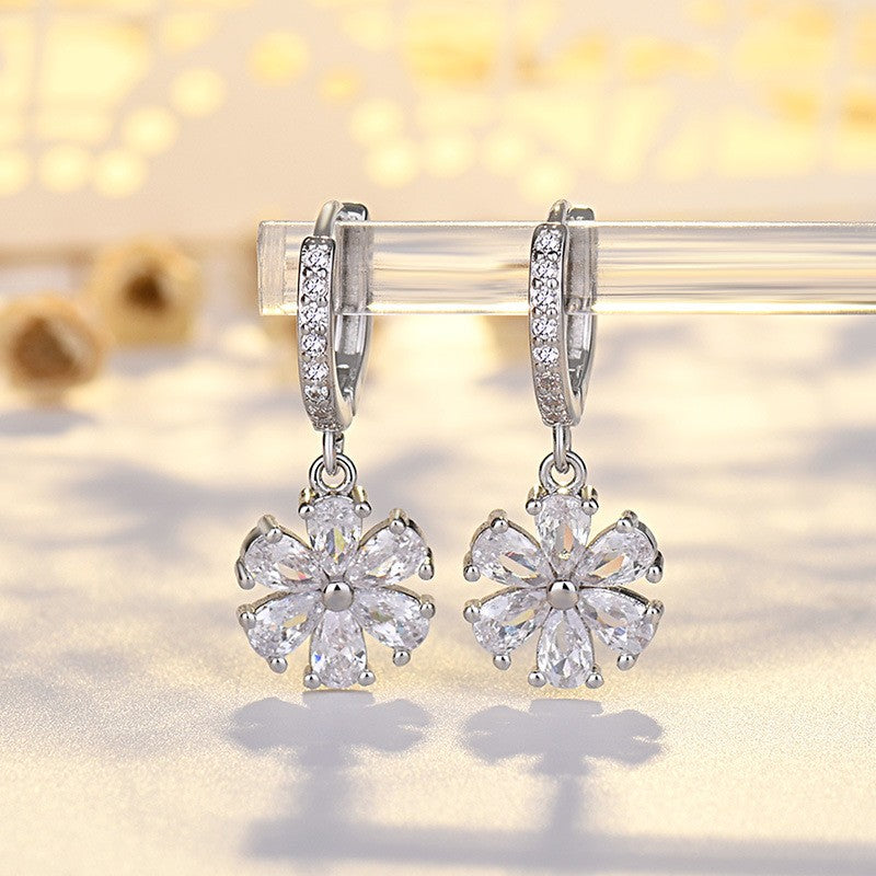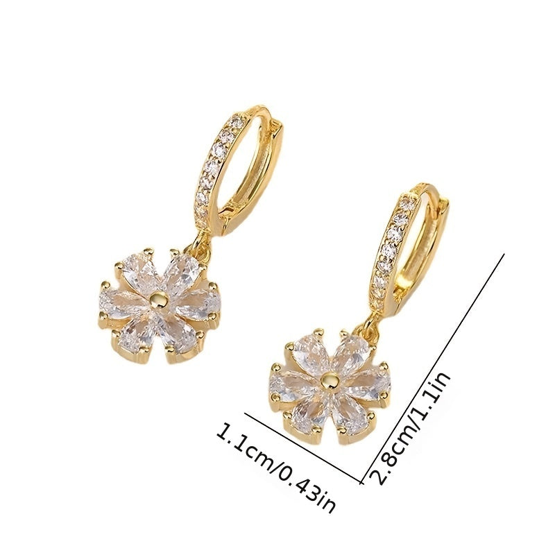 These elegant Flower Zircon Drop Hoop Earrings are perfect for women and girls. They feature a beautiful design with zircon stones and 18K plated ear buckles, making them ideal for parties and holidays. Give them as a gift or wear them yourself to add a touch of glamour to any outfit.