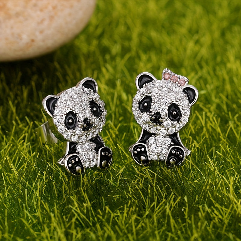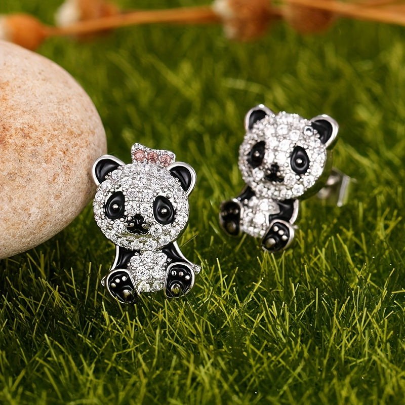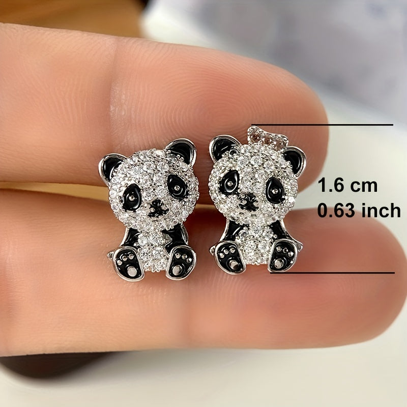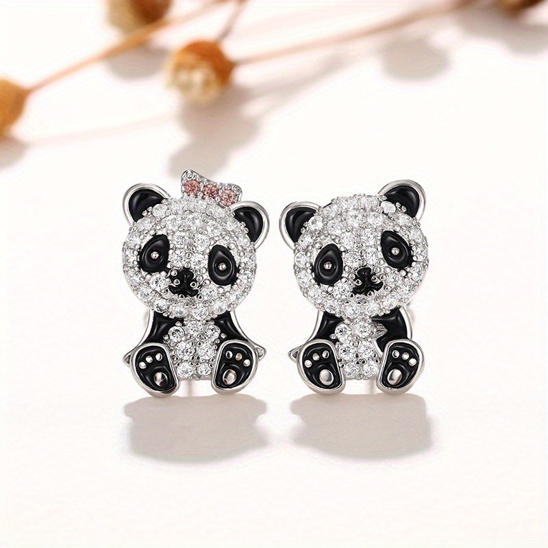 Enhance your style with these stunning panda inlaid zircon earrings. Made from high-quality 925 silver plated material, perfect for parties and everyday wear.