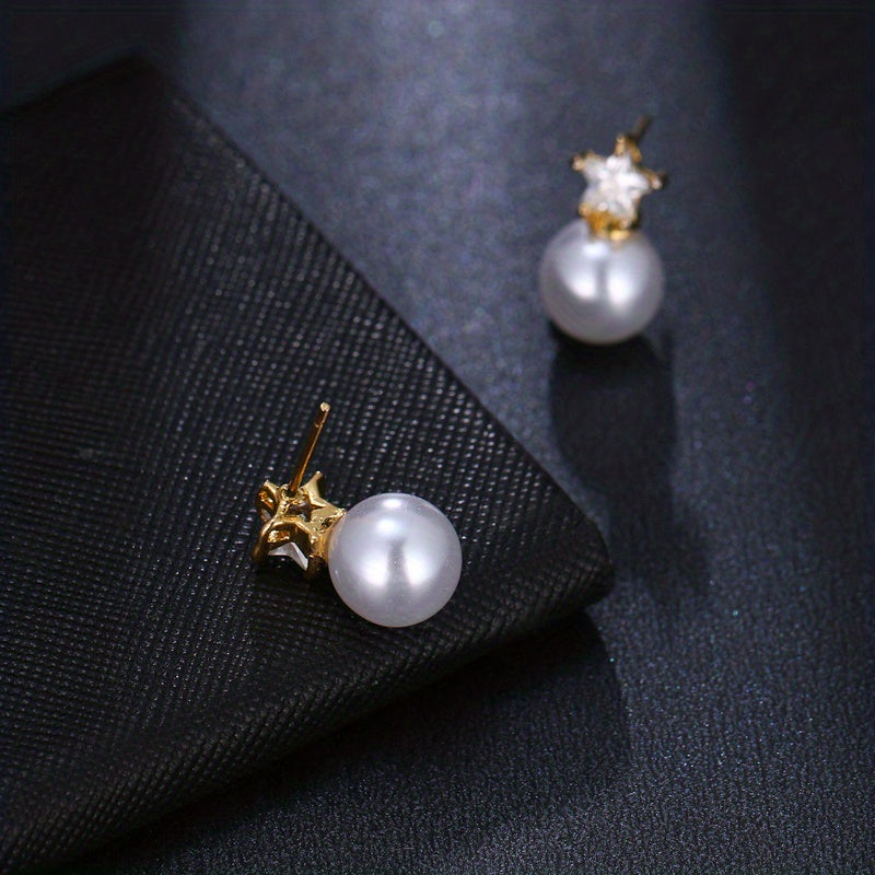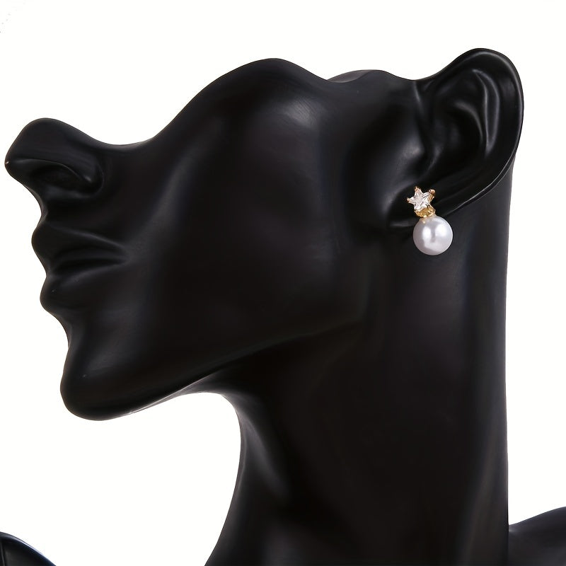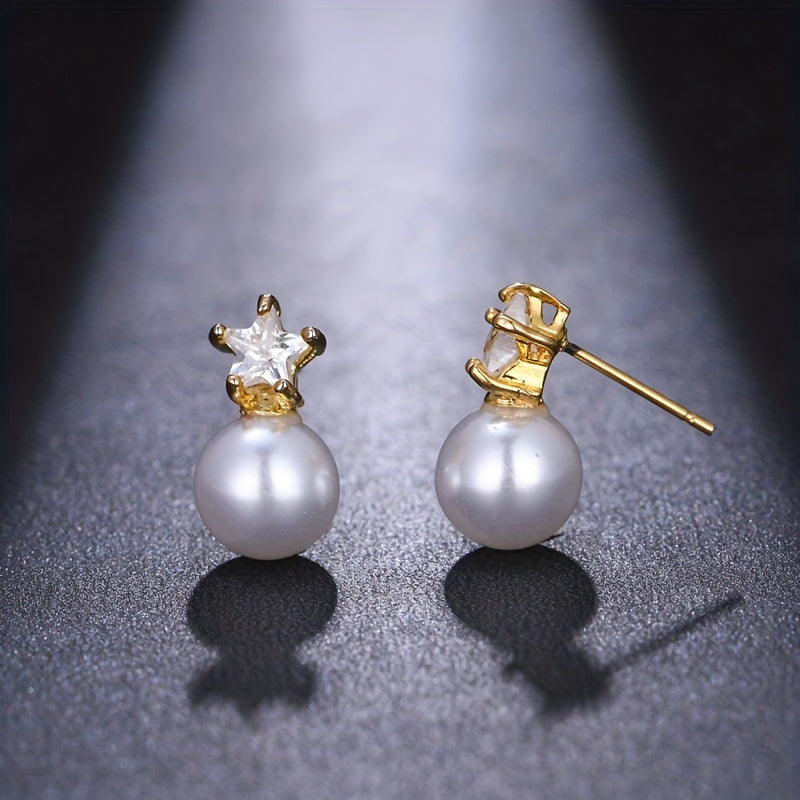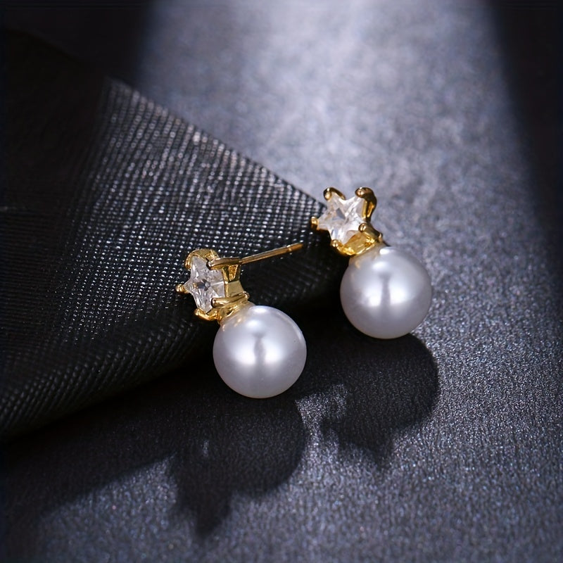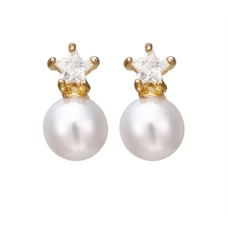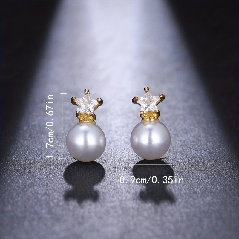 Elegant and stylish stud earrings featuring zircon and faux pearl design, perfect for men or couples. Enhance your look with these charming ear jewelry pieces.