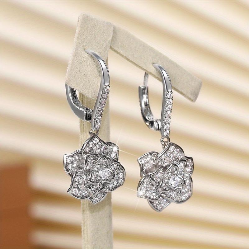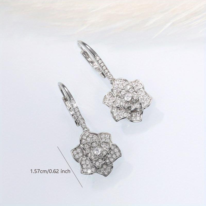 These beautiful flower-shaped hook earrings are encrusted with sparkling zircon, perfect for daily casual wear or as a fine jewelry lover's gift.