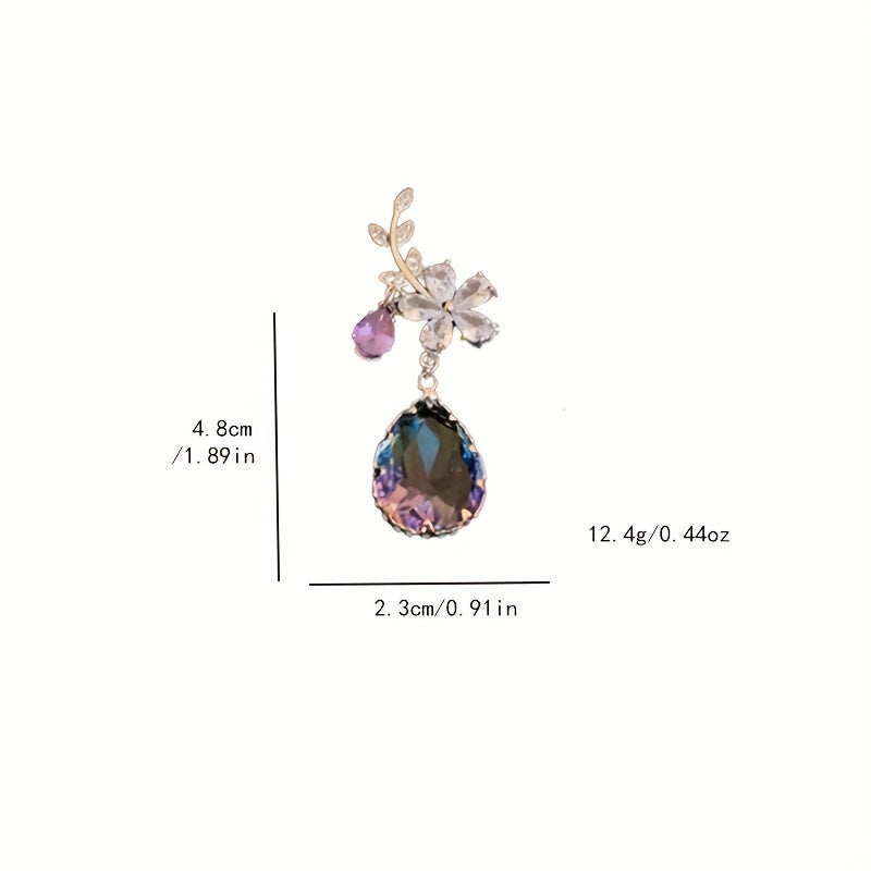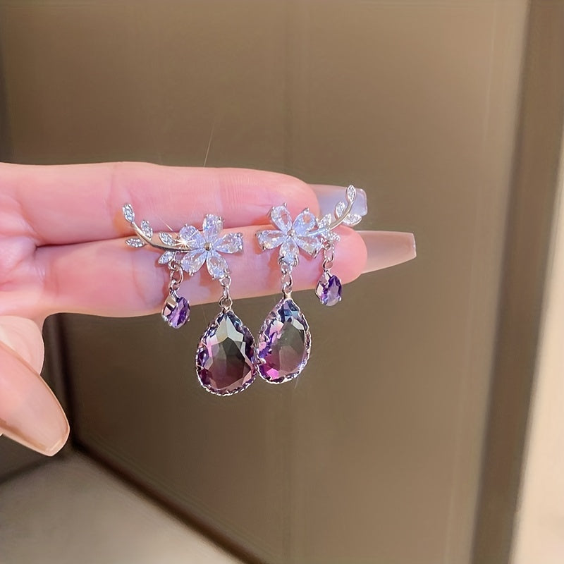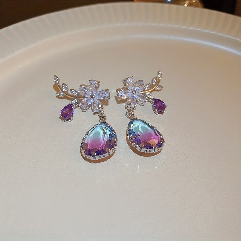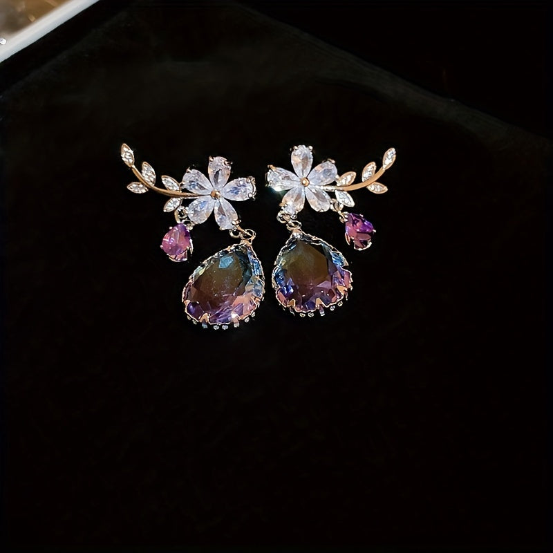 Elegant zircon drop earrings featuring flower and teardrop shapes. Perfect gift for women on any occasion.