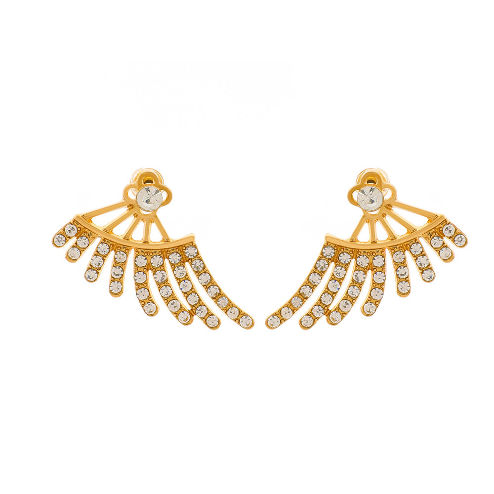 These stylish geometric earrings feature zircon accents and unique wing design. Perfect for adding a touch of elegance to your look.