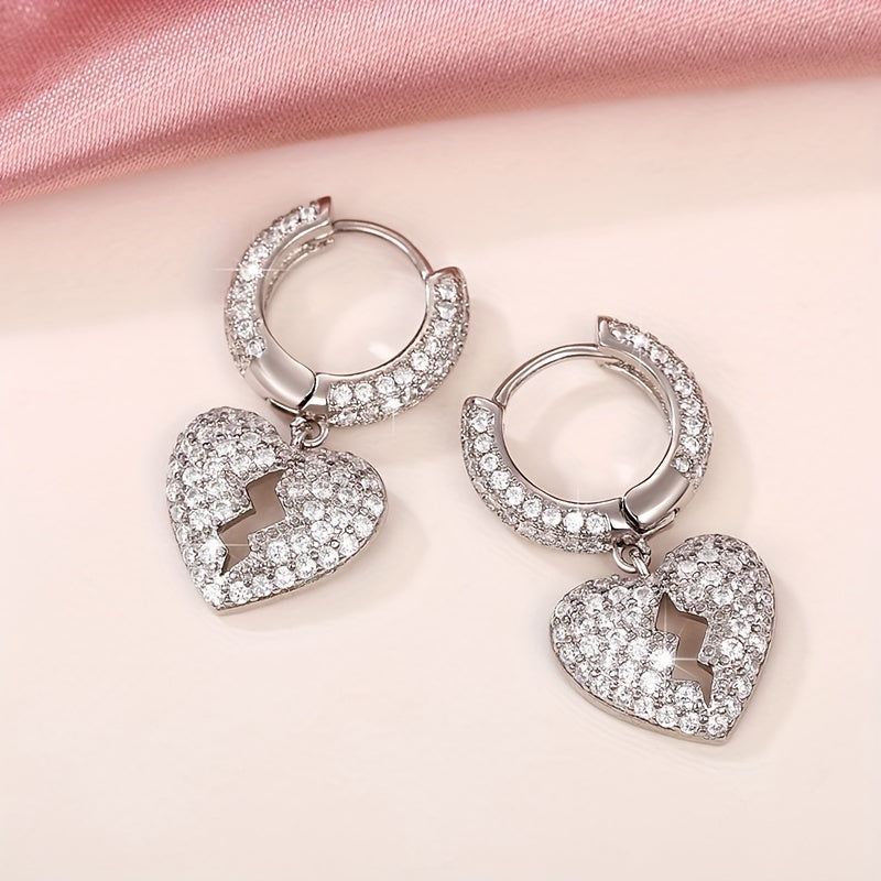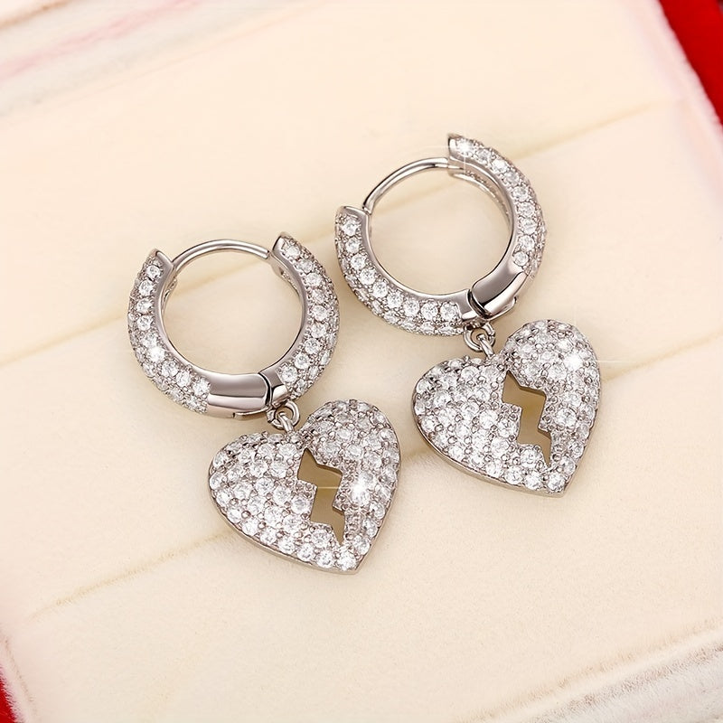Show off your hip hop style with these heart broken earrings featuring zircon details. Perfect for men and women.