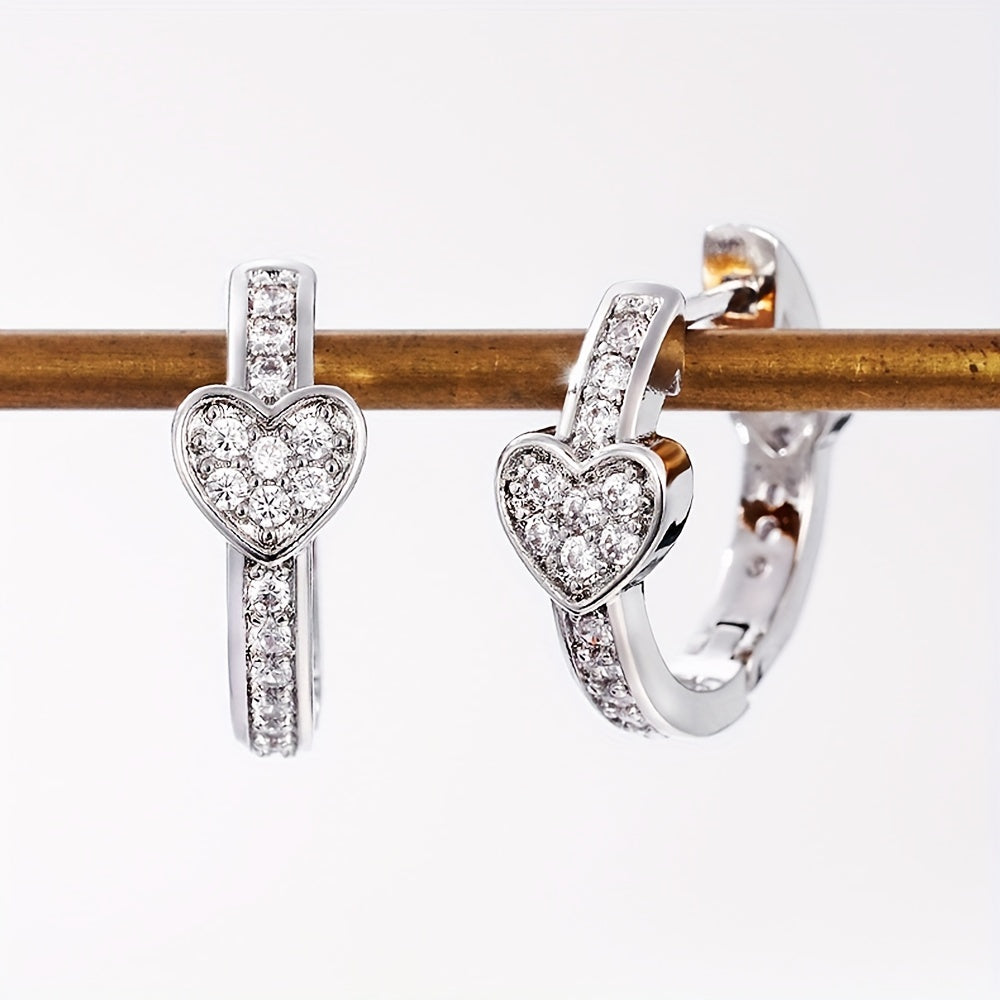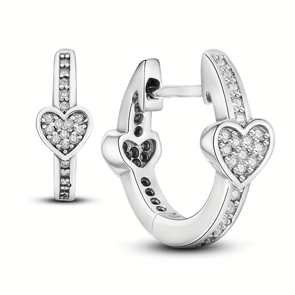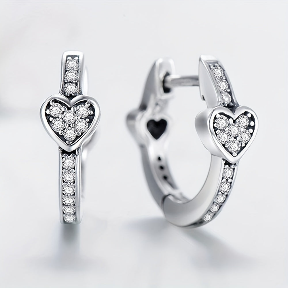 These minimalist style hoop earrings feature a zircon heart decoration, made of high-quality sterling 925 silver. Perfect for female gift!