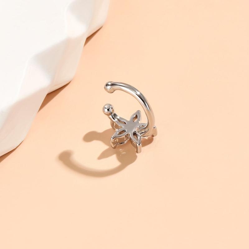 Elevate your style with this minimalist ear cuff featuring a flower design with sparkling zircon inlay. Made of copper with 14K plated finish, this piece makes a perfect gift for her.
