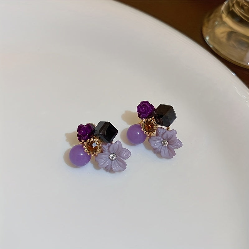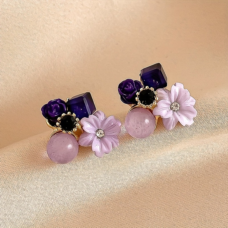 These stunning flower shape stud earrings are embellished with sparkling zircon, adding elegance to any outfit.