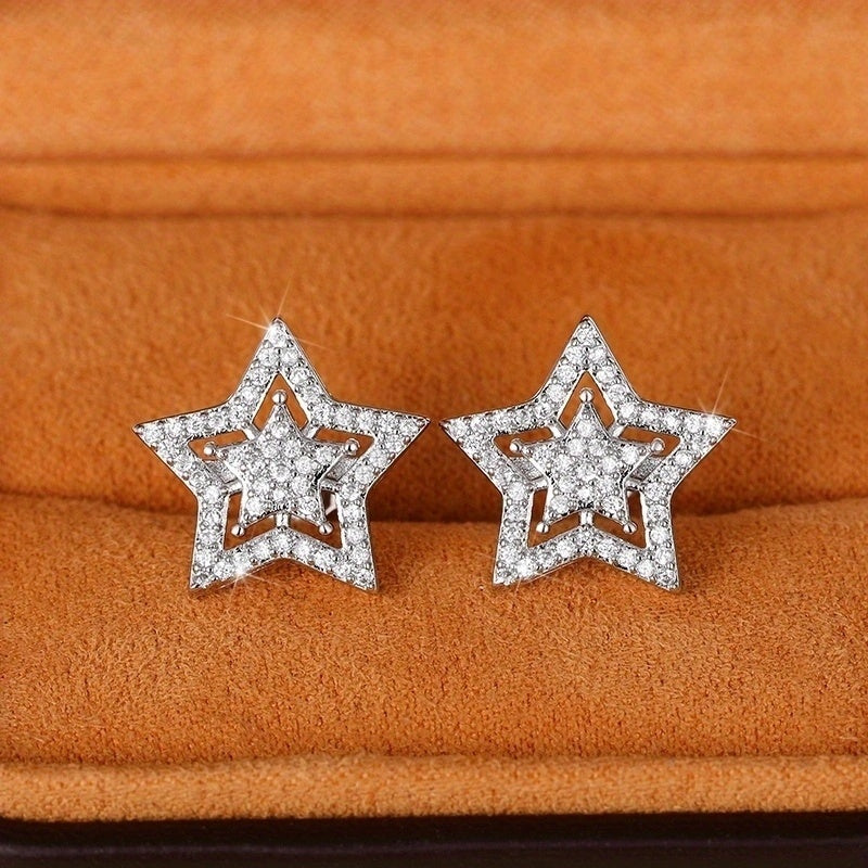 Add a touch of sparkle to your ensemble with these stunning star-shaped stud earrings. The earrings are inlaid with zircon for a glamorous look.