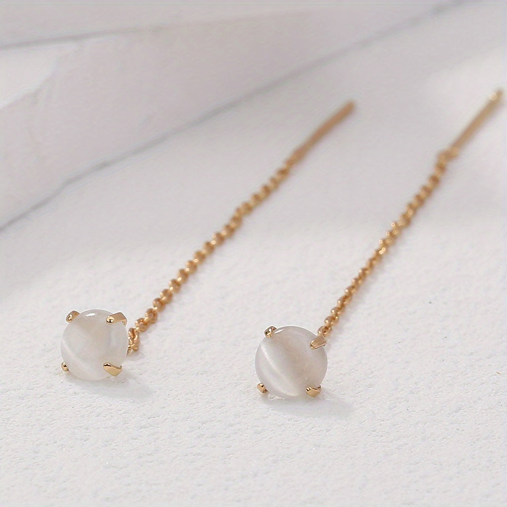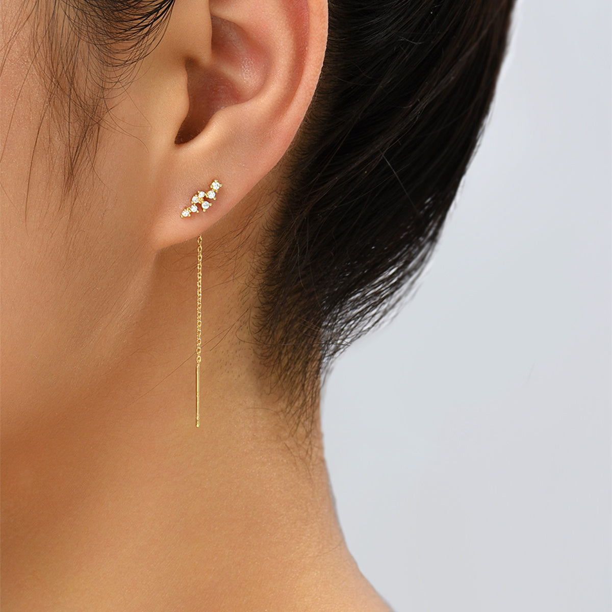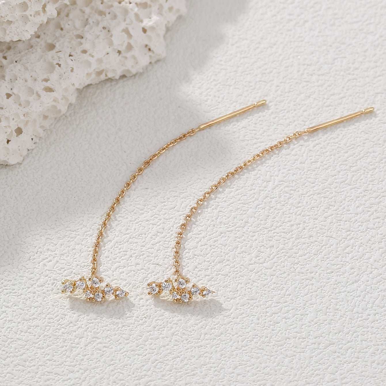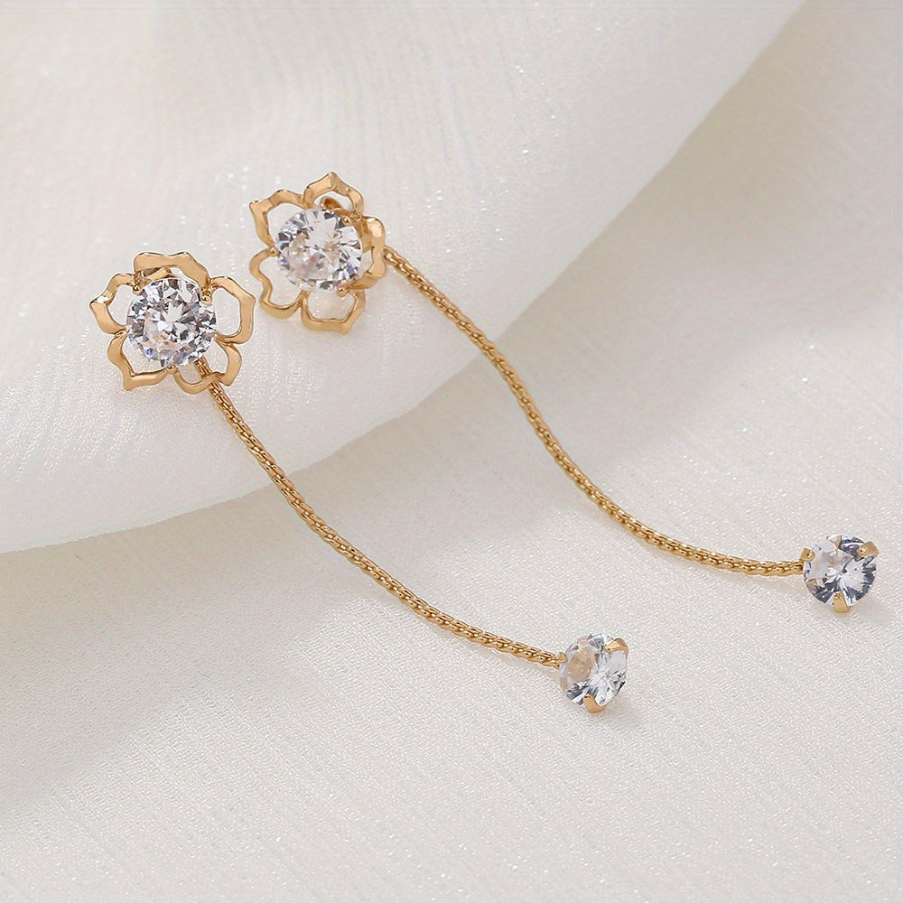 Add a touch of glamour with these elegant zircon tassel threader earrings. Perfect for any occasion!