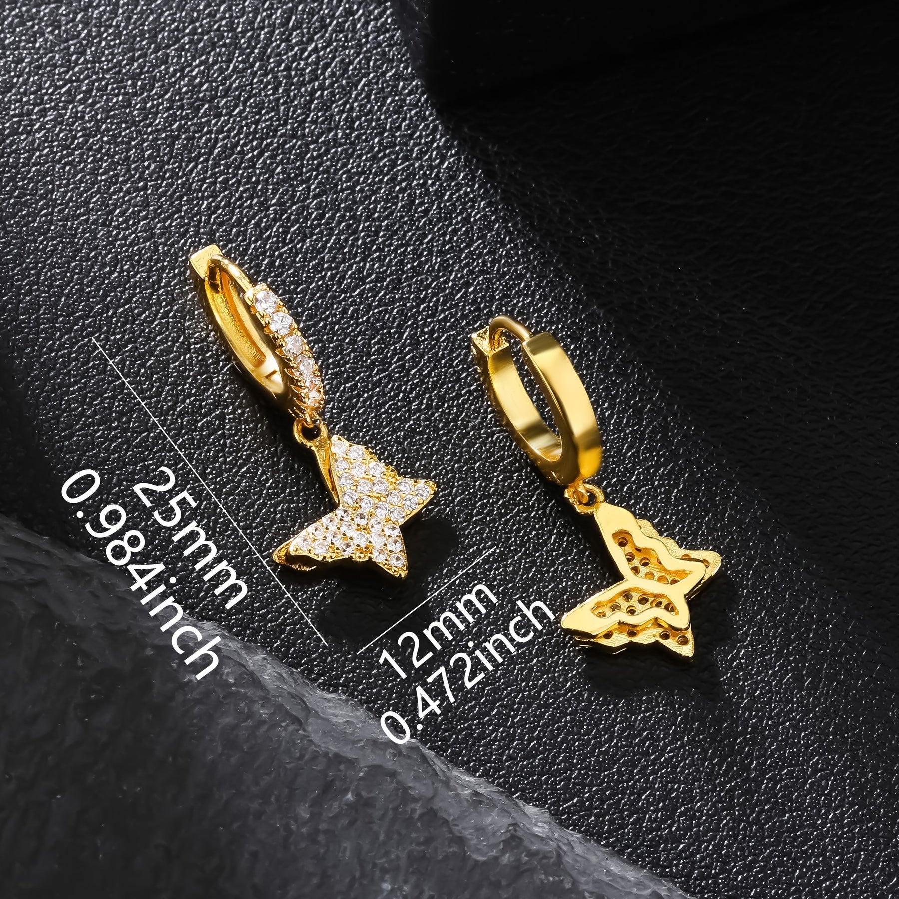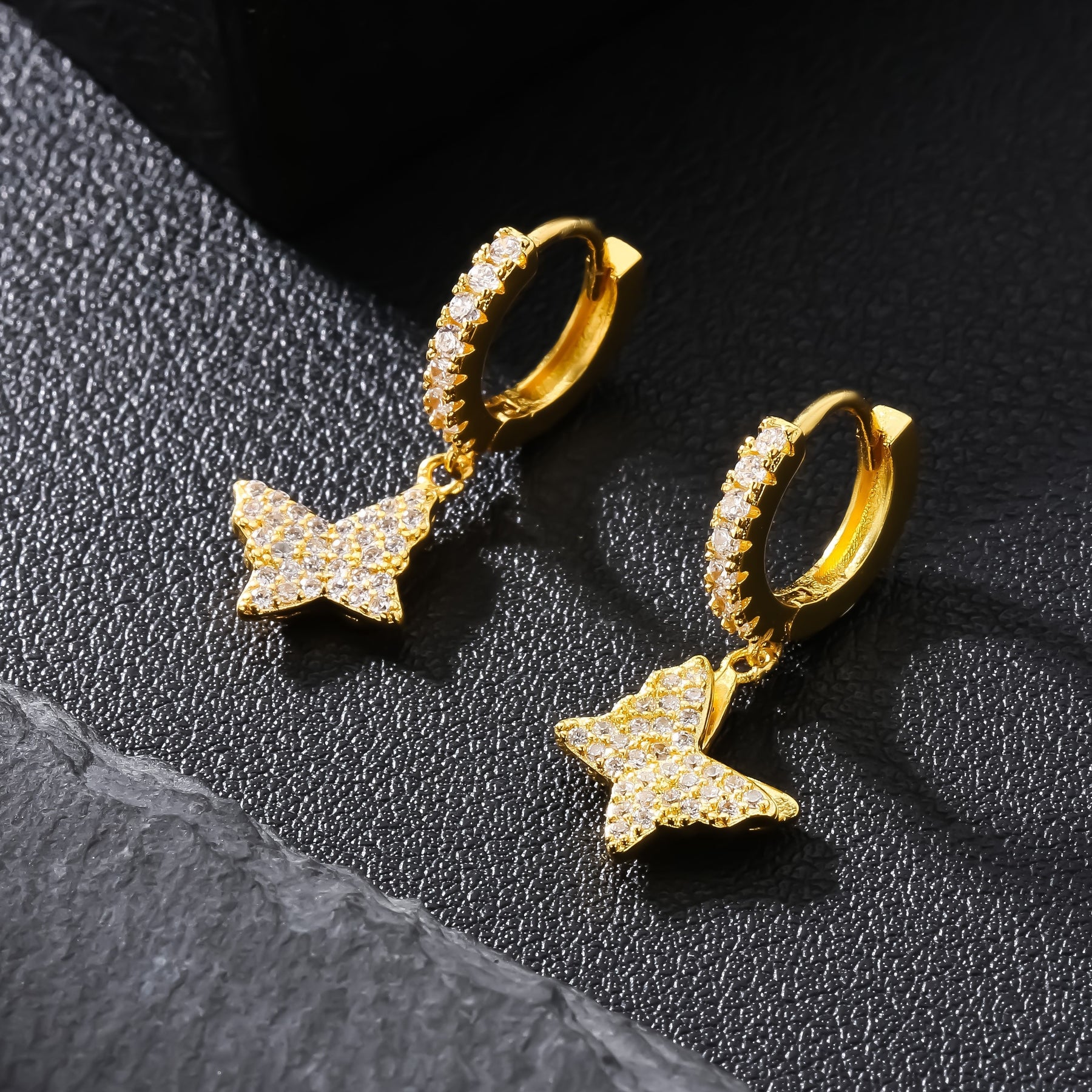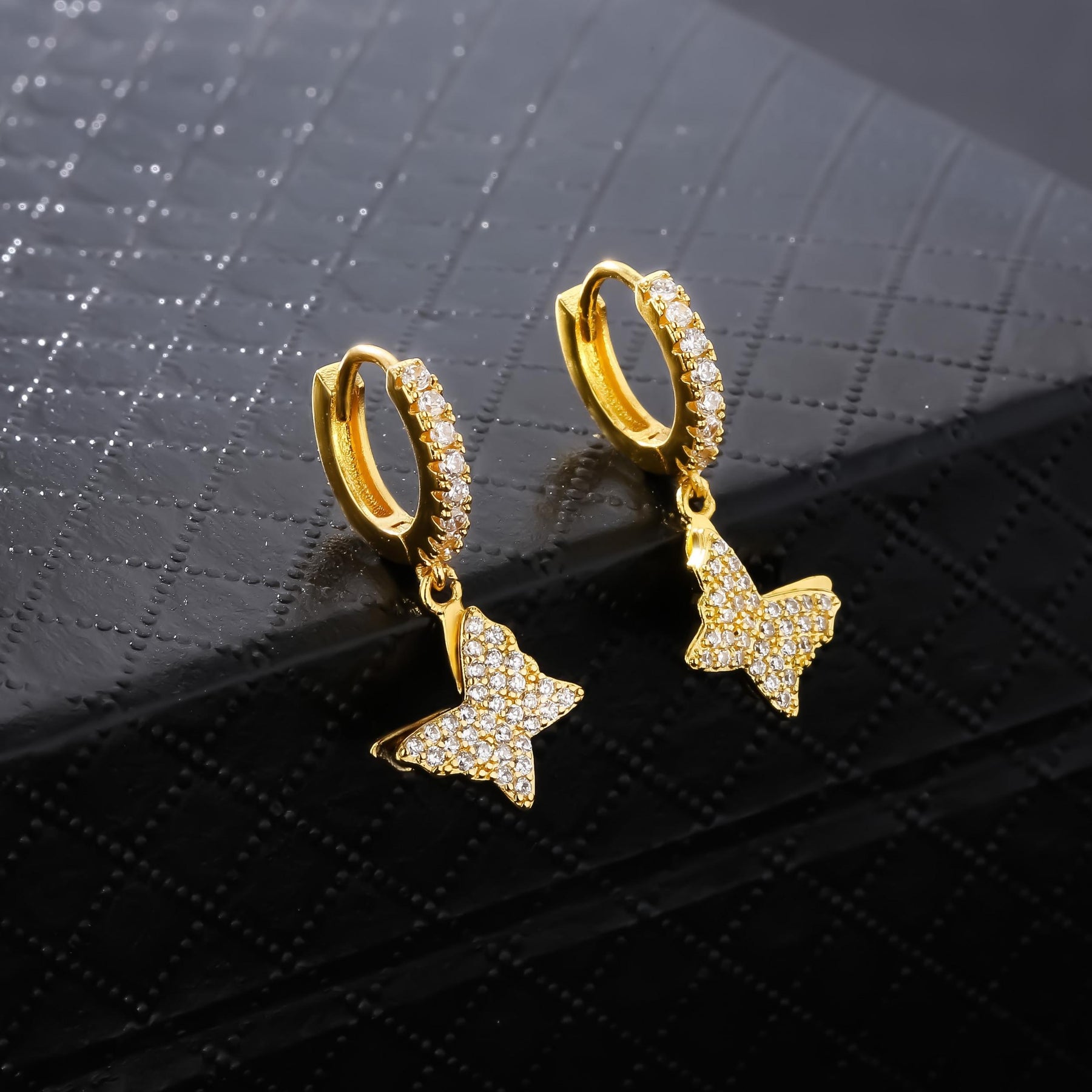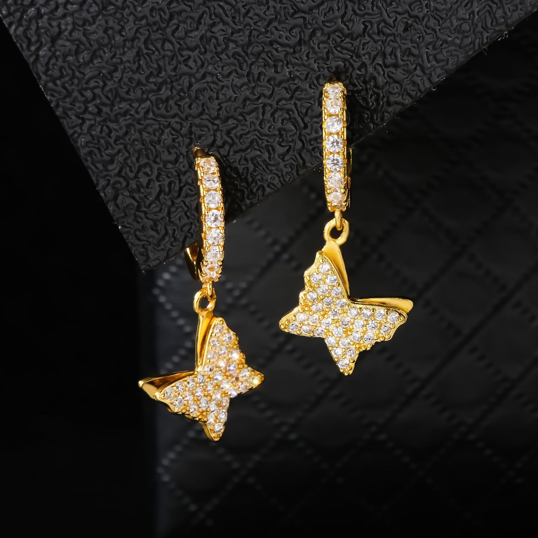 Add elegance to your outfit with these stunning butterfly earrings. Made with zirconia and 18K gold plating, these earrings are perfect for any party or special occasion.