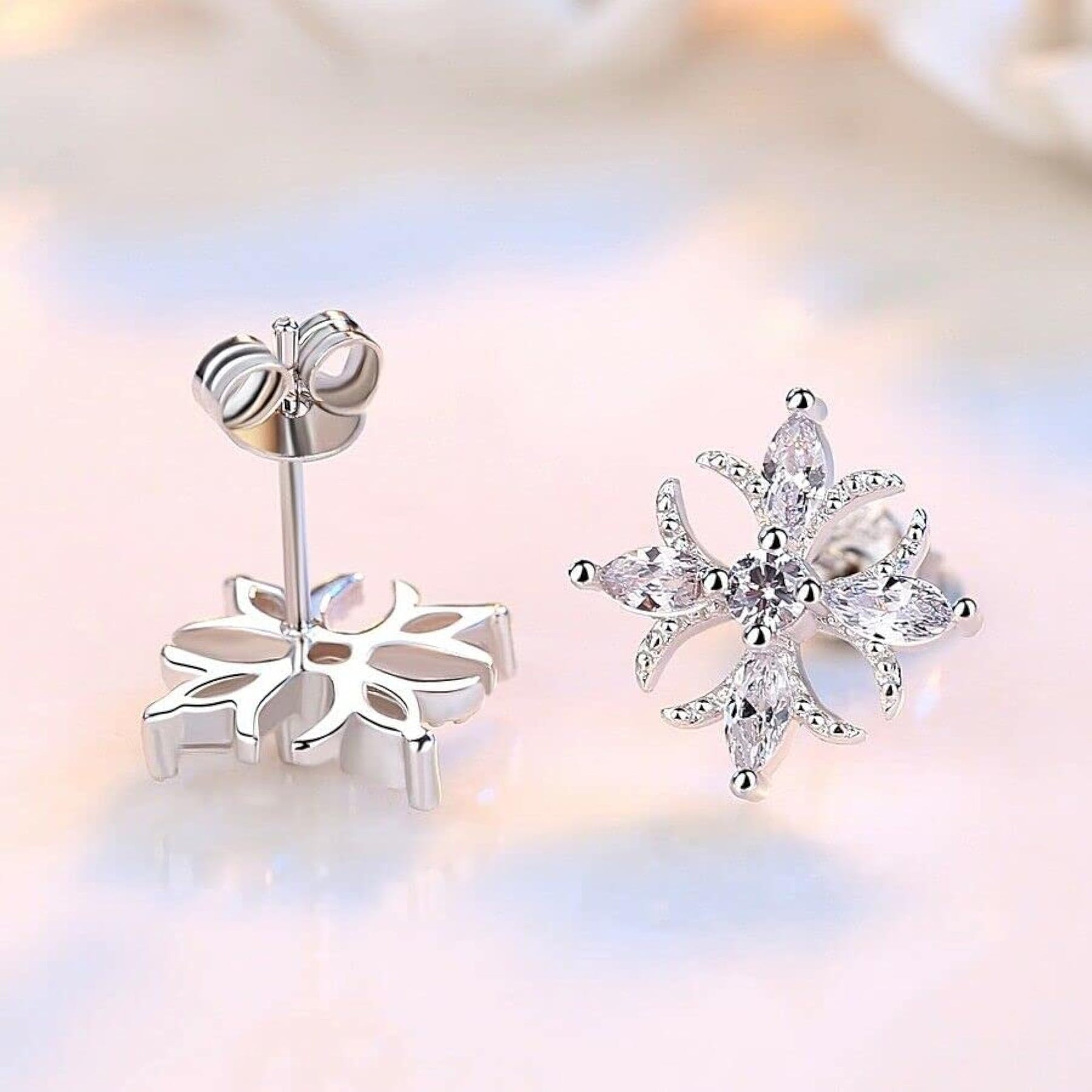 Make a statement with these elegant zirconia floral stud earrings featuring butterfly pushbacks. Perfect for weddings and special occasions.