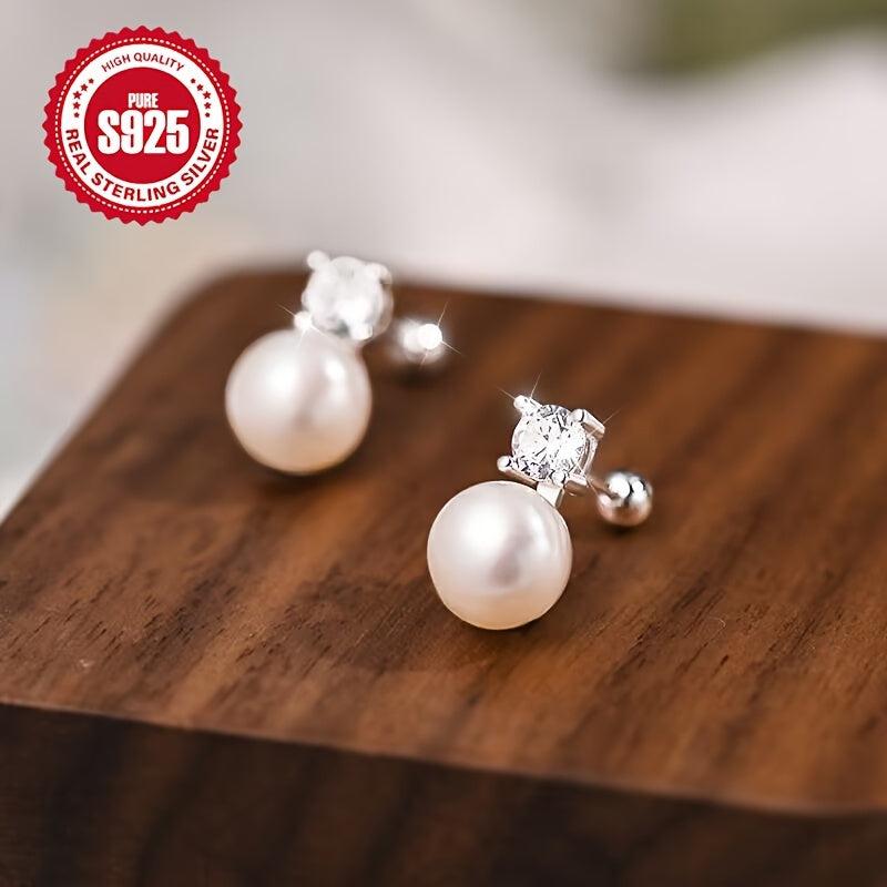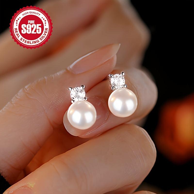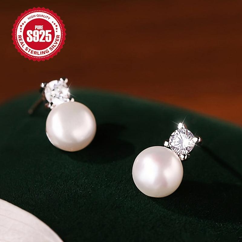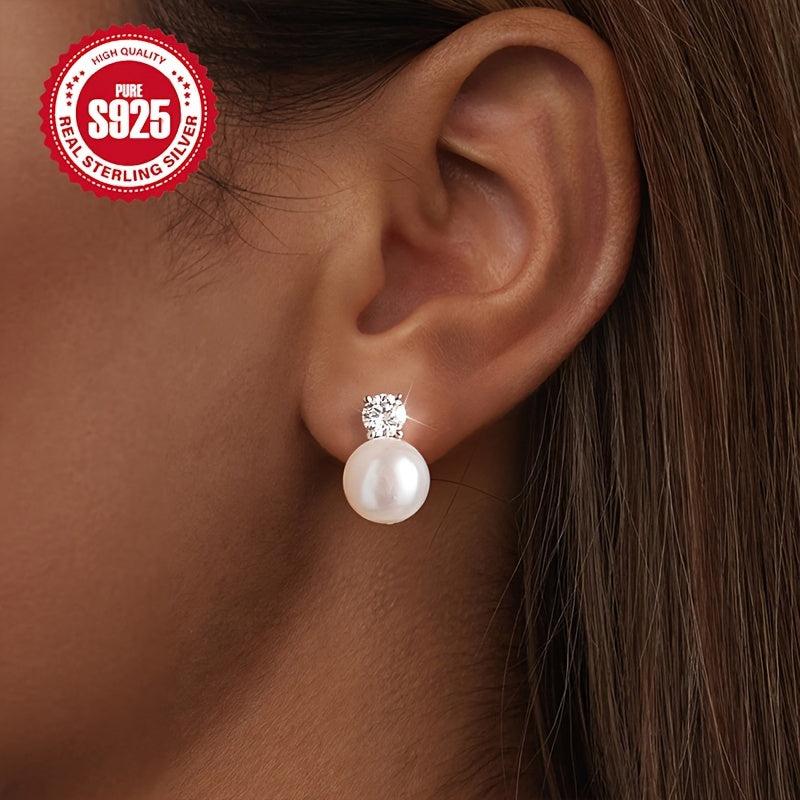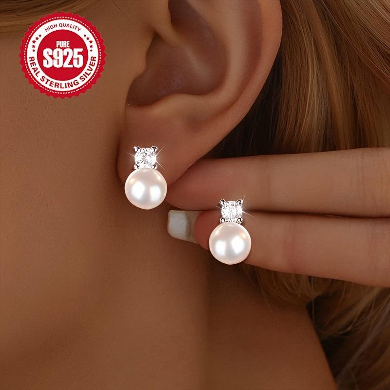 Elegant and stylish zirconium shell pearl earrings made of S925 silver. These earrings add a touch of sophistication to any outfit.