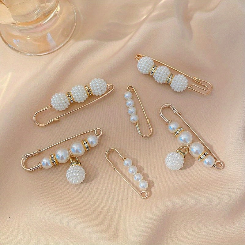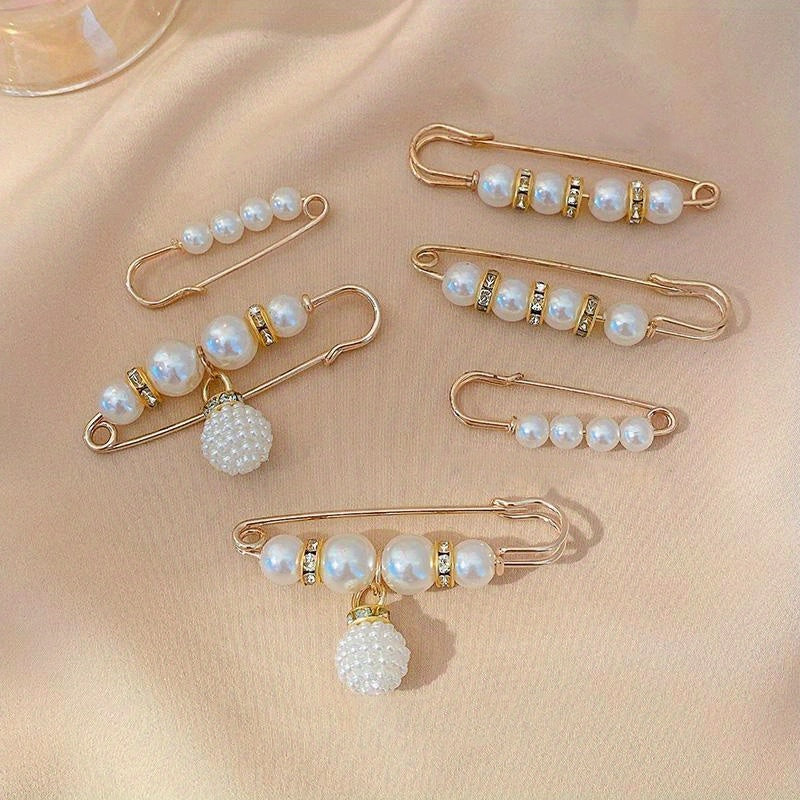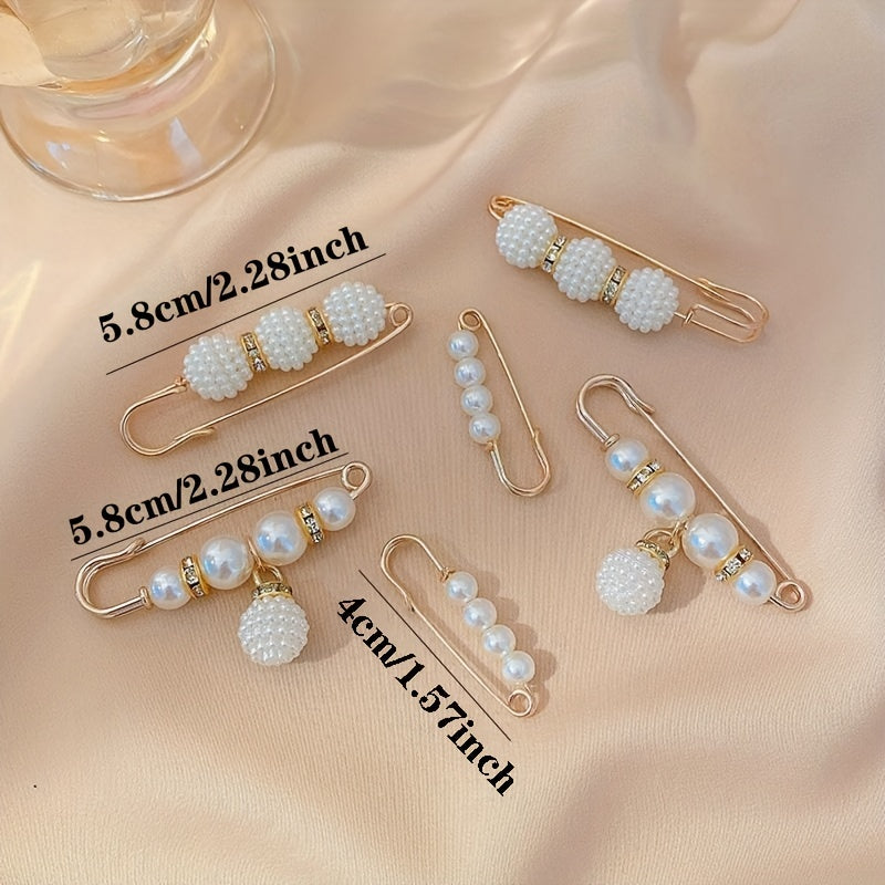 Add a touch of elegance to your outfits with this 6-piece set of faux pearl brooches. Perfect for adding some sparkle and style to pants, jeans, dresses, and more.