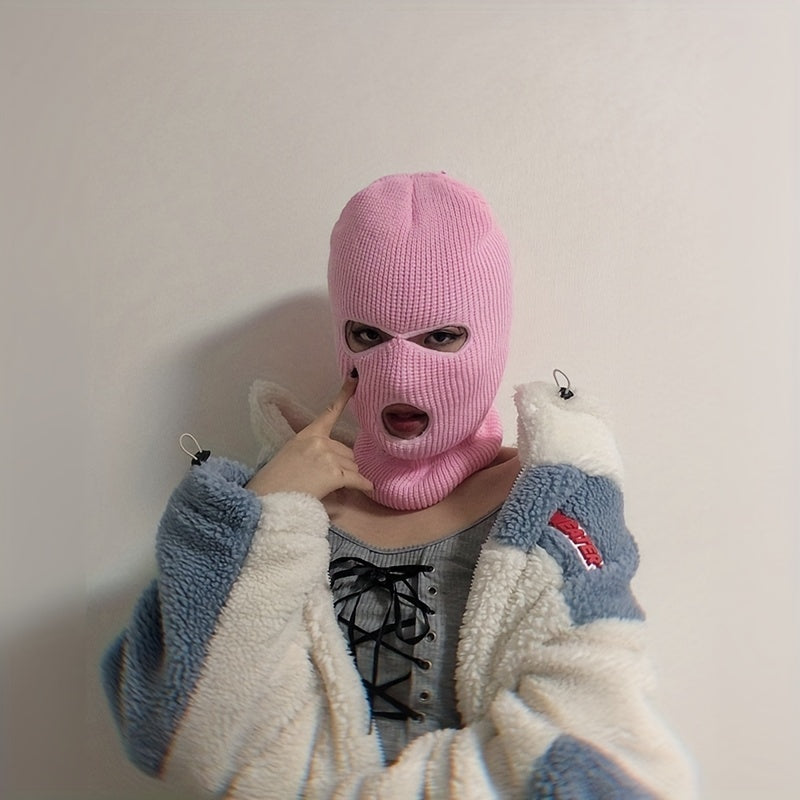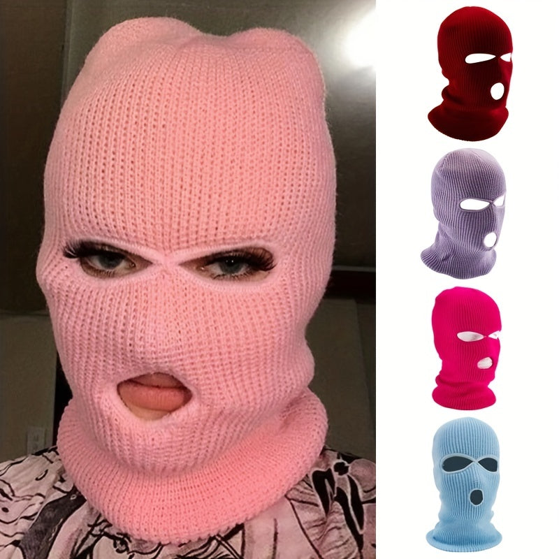 Stay warm and stylish with this knitted balaclava ski mask. Perfect for cycling and outdoor activities, it provides full face coverage and windproof protection.