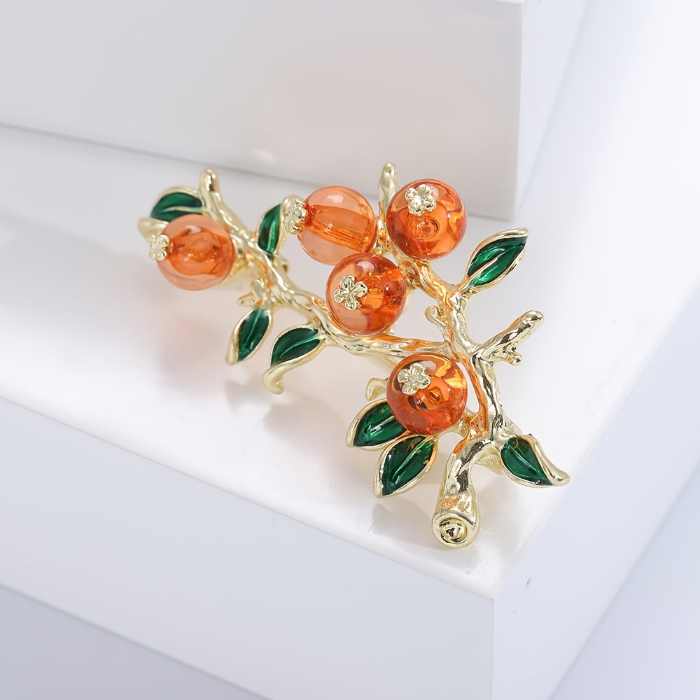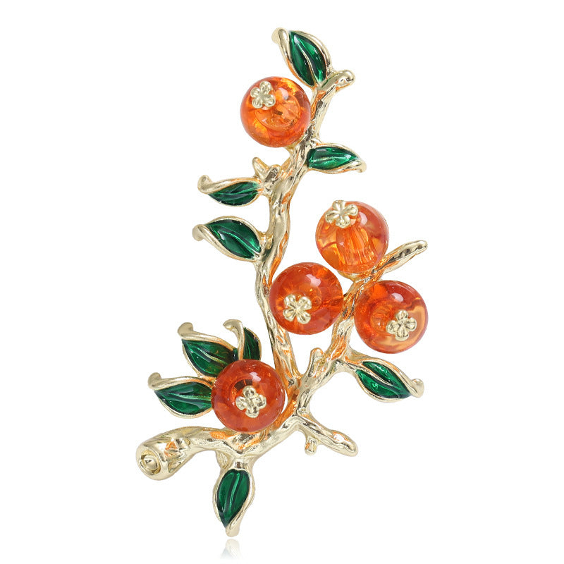 This vintage Chinese-inspired brooch pin features a persimmon fruit design, symbolizing luck and prosperity. It is a unique and stylish accessory for women and girls to decorate their clothing or accessories.