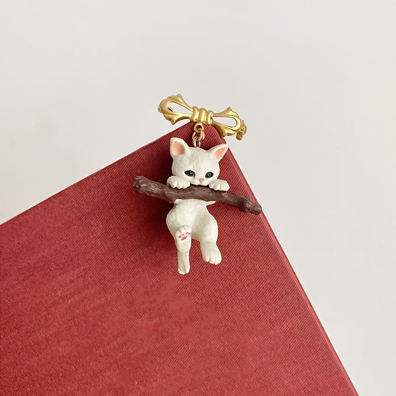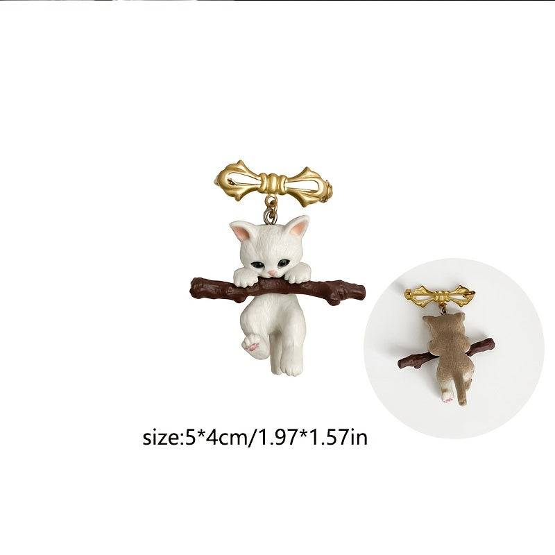 Adorn your clothes or backpack with this charming cat hanging brooch pin. The 3D design creates a lifelike effect that adds a playful touch to your look.
