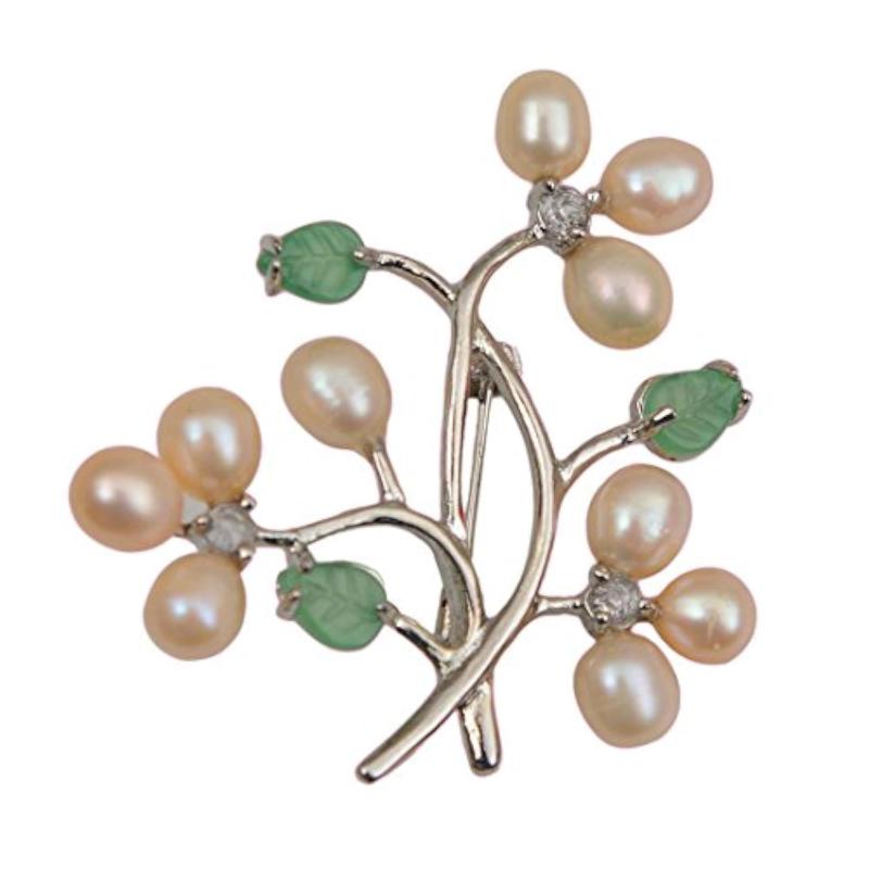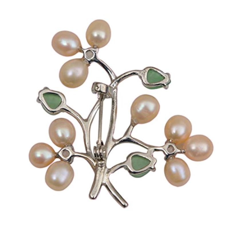 Elegant freshwater pearl brooch that sparkles with rhinestone accents for a touch of glamour.