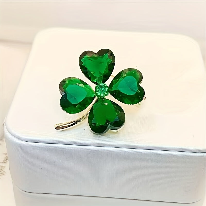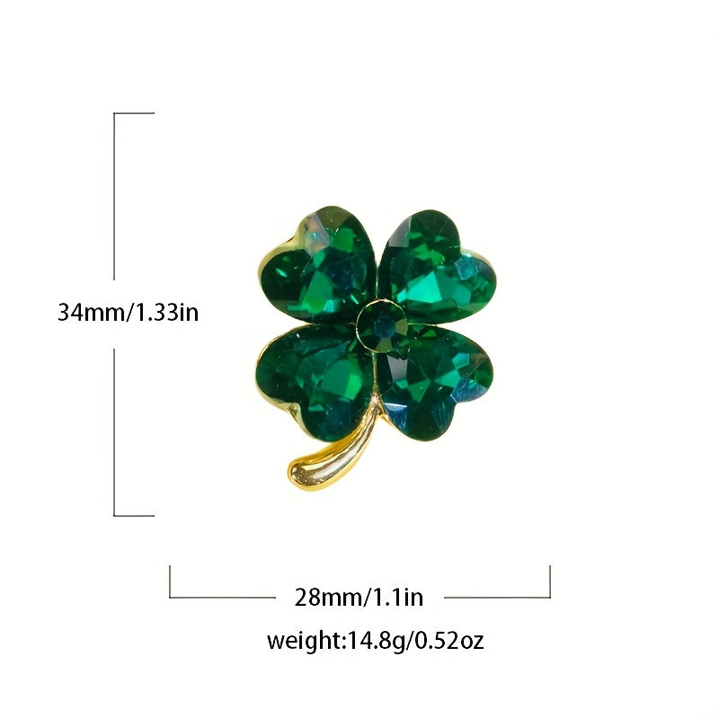 Add a touch of luck and elegance to your outfit with this beautiful four leaf clover crystal brooch. Perfect for fixing on clothes or suits.