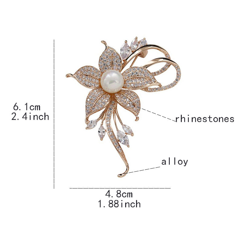 Add a touch of Hawaiian elegance to your outfit with this beautiful faux pearl and rhinestone flower brooch. The safety pin design ensures it stays in place securely.