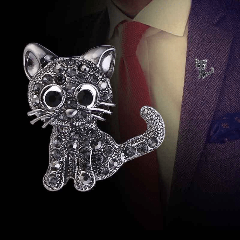 Antique finished little cat brooch pin made of silvery plated material. Perfect for coats, shirts, and dresses. Suitable for both men and women. Adds a touch of style and personality to your outfit.