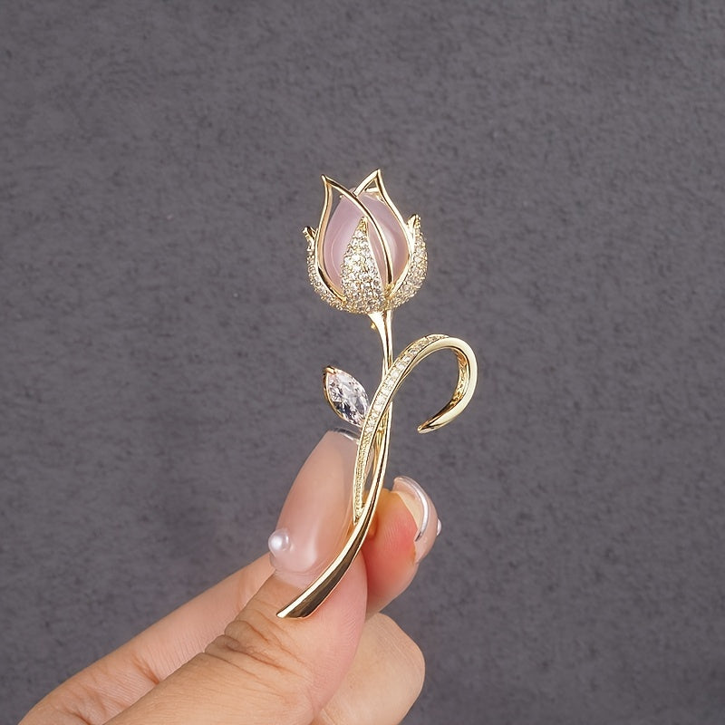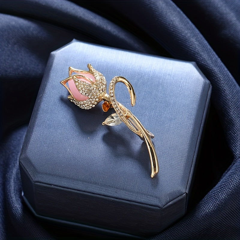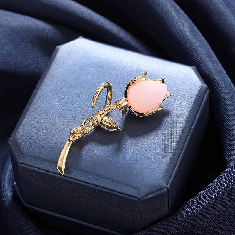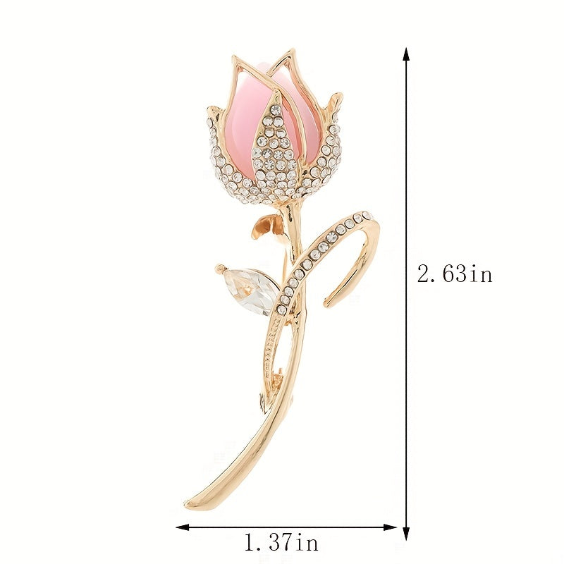 Add a touch of elegance to your outfit with this pink tulip brooch. Perfect for a generous chest female flower suit jacket.
