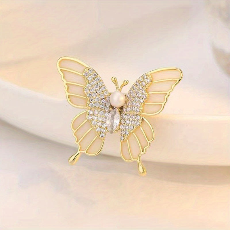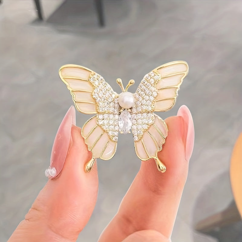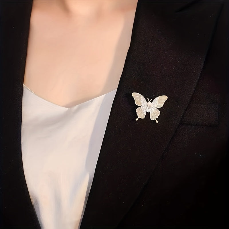 Add a touch of elegance to your outfit with this metal rhinestone butterfly wing brooch featuring faux pearls and crystals. Perfect for accessorizing clothing or jewelry.