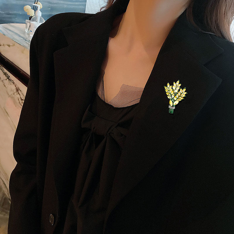 Elegant flower brooch pin embellished with rhinestones, perfect for adding a touch of sparkle to your outfit. This versatile accessory can be worn on shirts, suits, cardigans, scarves, or as a breastpin for weddings and banquets.