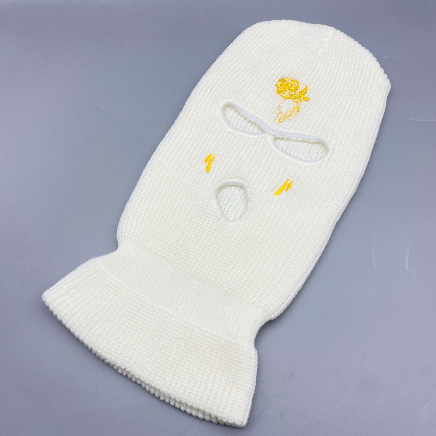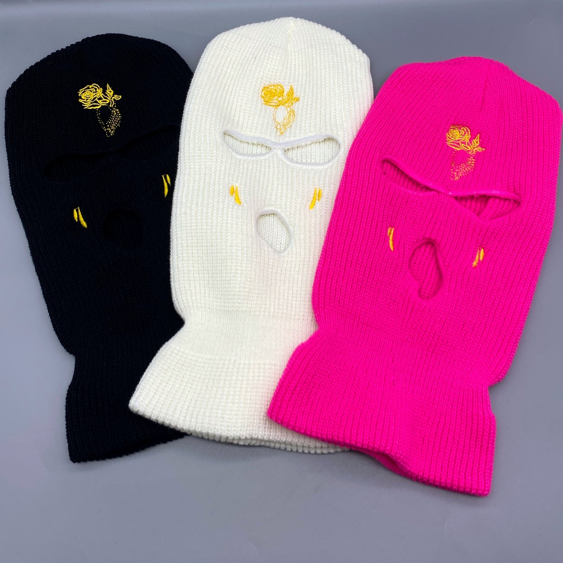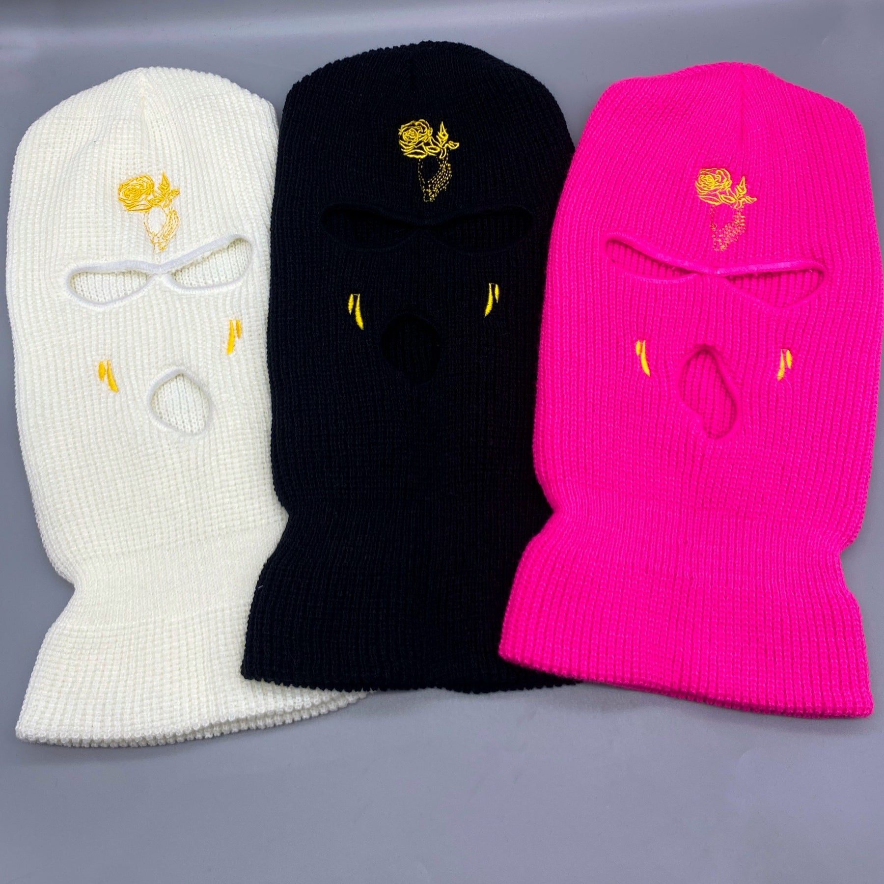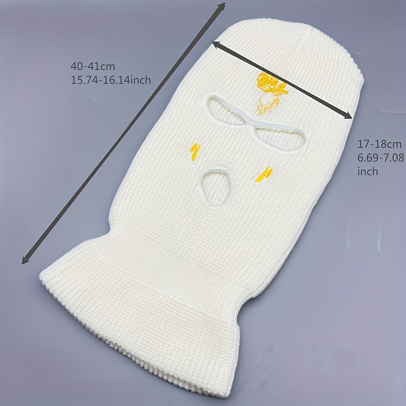 Stay warm and stylish with this Rose Embroidery 3 Hole Ski Mask. Perfect for outdoor activities like cycling, this windproof mask is designed for both men and women.