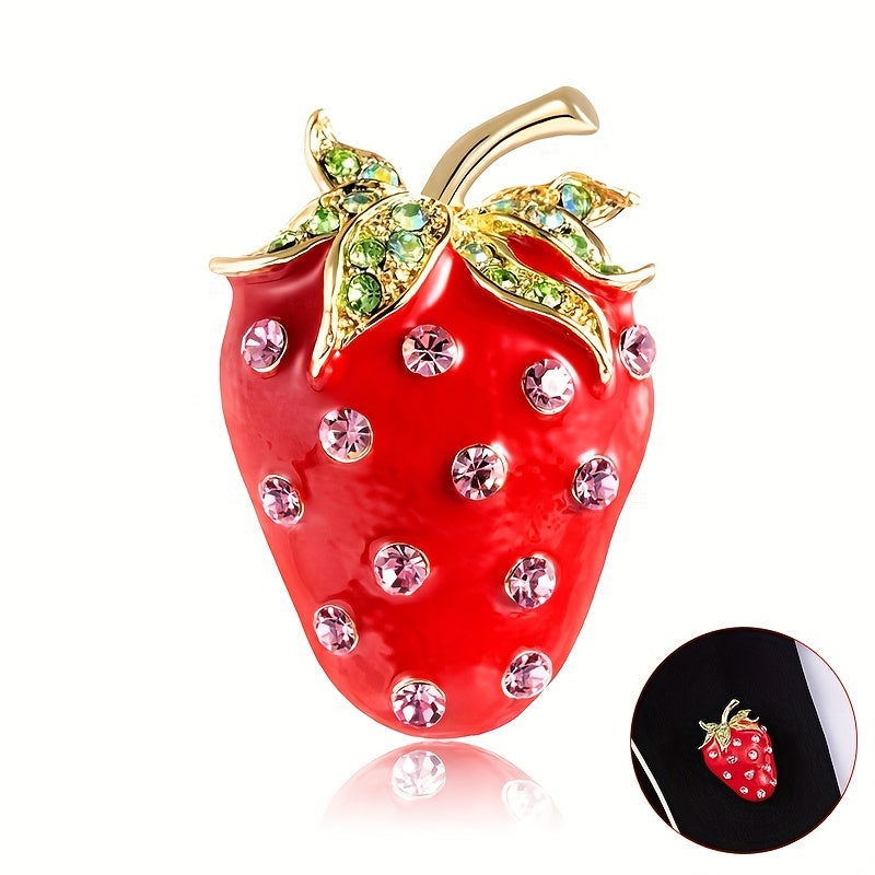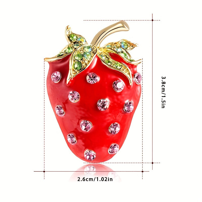 Add a touch of elegance to your outfit with this strawberry brooch pin featuring rhinestones. Perfect for shirts, suits, cardigans, and scarves.