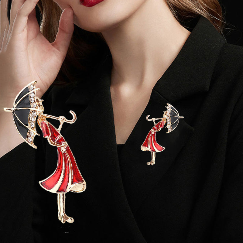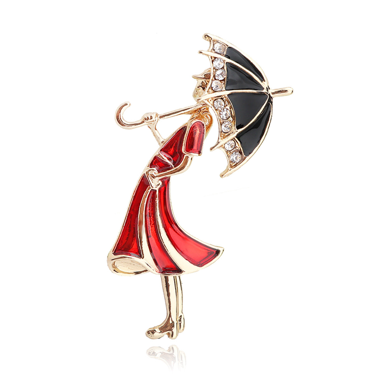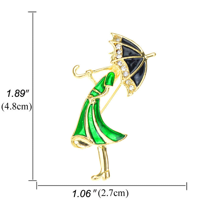 Add a touch of elegance to your coat with this beautiful umbrella brooch featuring rhinestone and enamel details. The perfect accessory for any outfit!