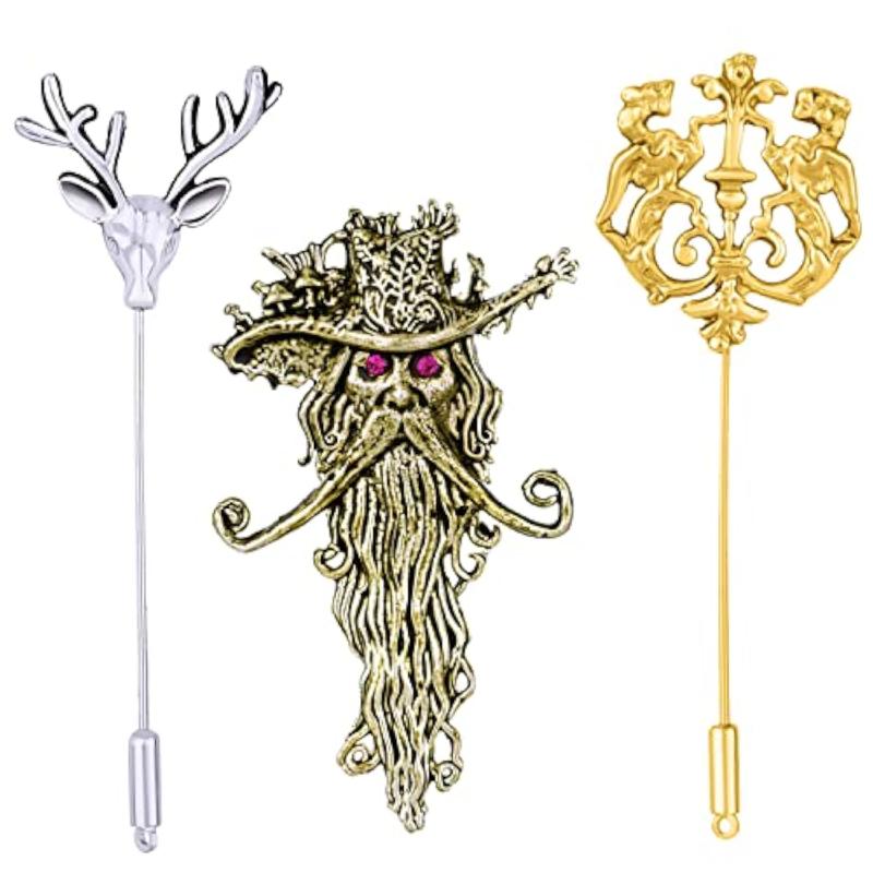 Elegant brooch/lapel pin featuring wizard, royal lion, and deer shapes. Perfect for weddings or special occasions.