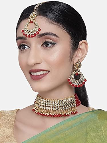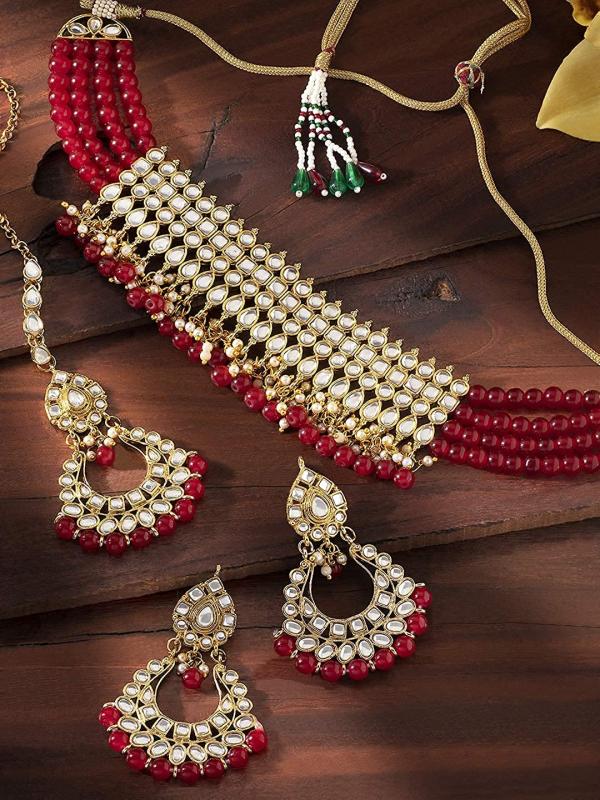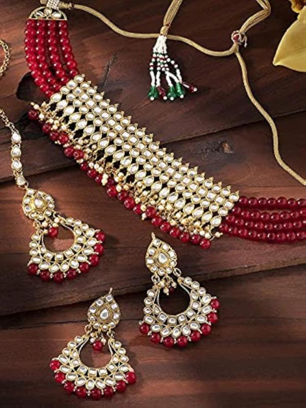 Elegant choker necklace set with Kundan & pearl studded design.