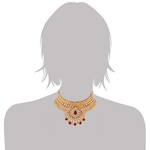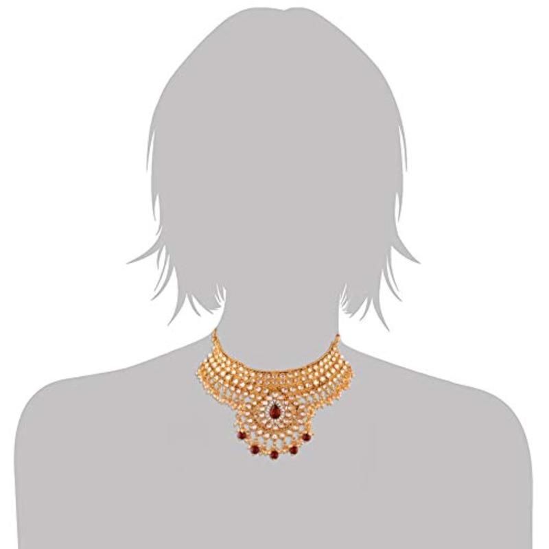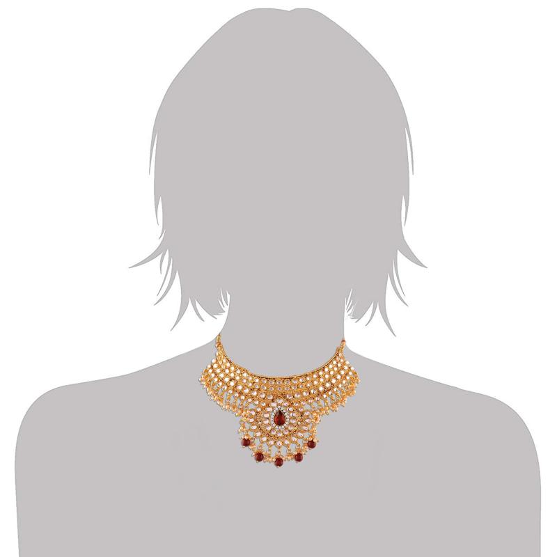 Enhance your traditional look with this stunning choker necklace set. It features intricate stone studded design that will add elegance to your outfit.