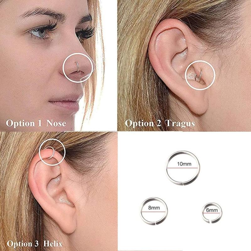 Get this pack of 2 surgical steel clip-on non-pierced nose rings that are rust-resistant and easy to wear. Each ring measures 8mm in size and is perfect for adding a stylish touch to your look.