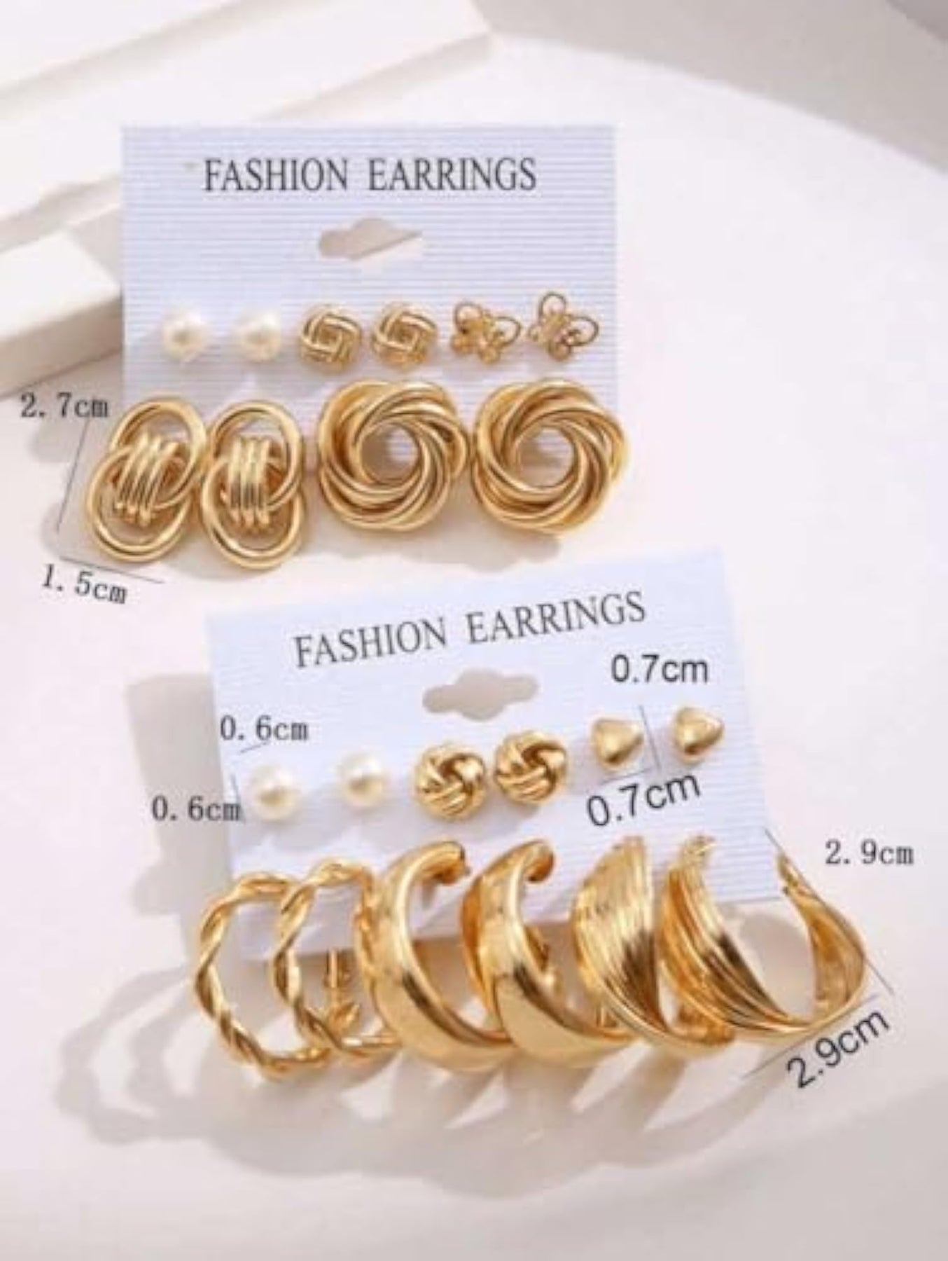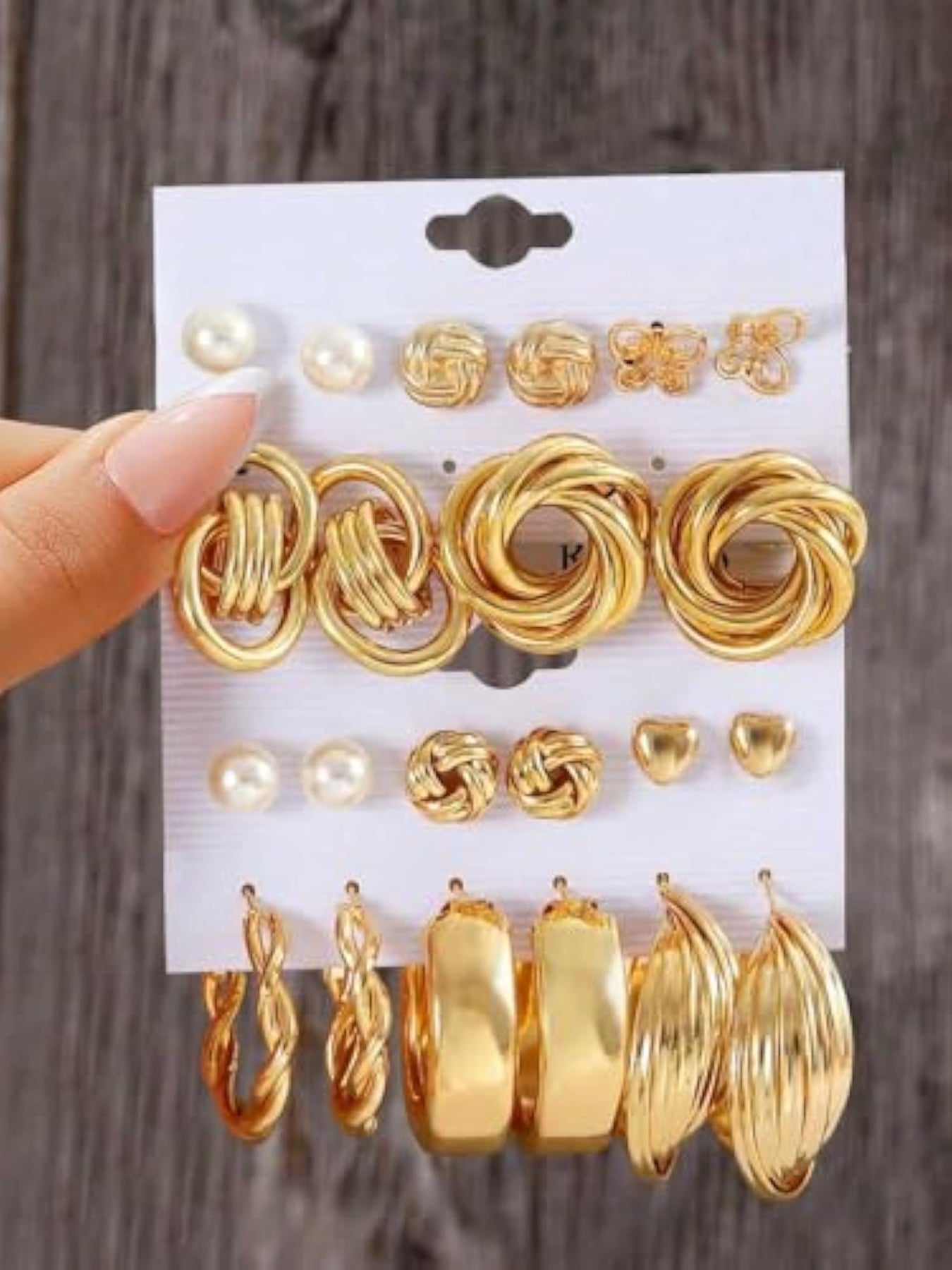 This combo set includes 22 pairs of stud and hoop earrings plated in a variety of finishes. Perfect for mixing and matching with any outfit.
