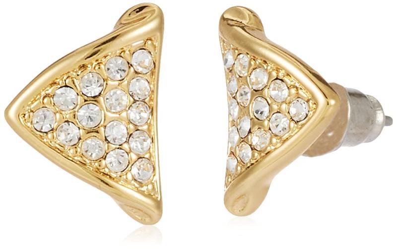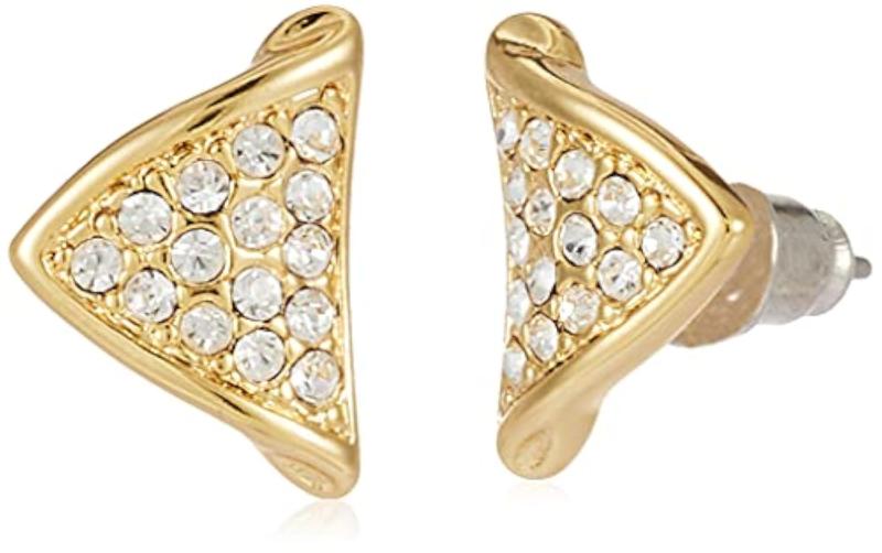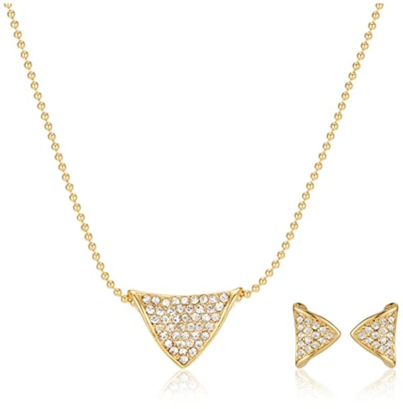 Elegant trine pendant and matching earrings set featuring 24kt plated Austrian crystal for a luxurious look.