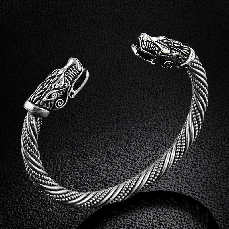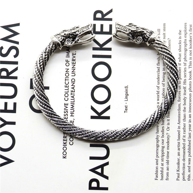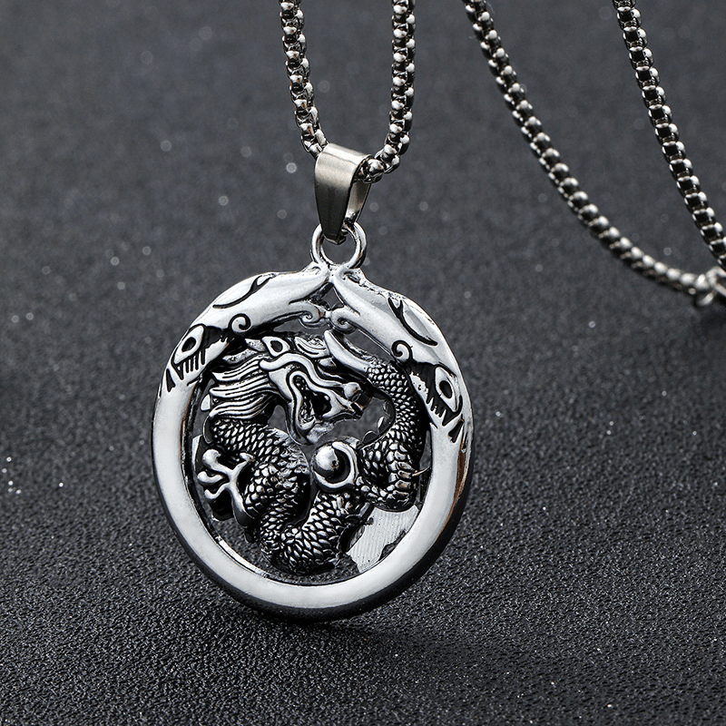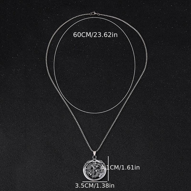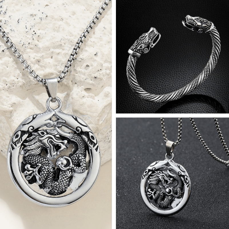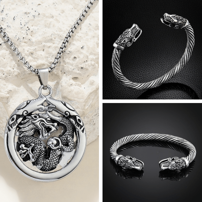 This set includes a dragon head necklace and a wolf head bracelet crafted from stainless steel, creating a retro and masculine look.