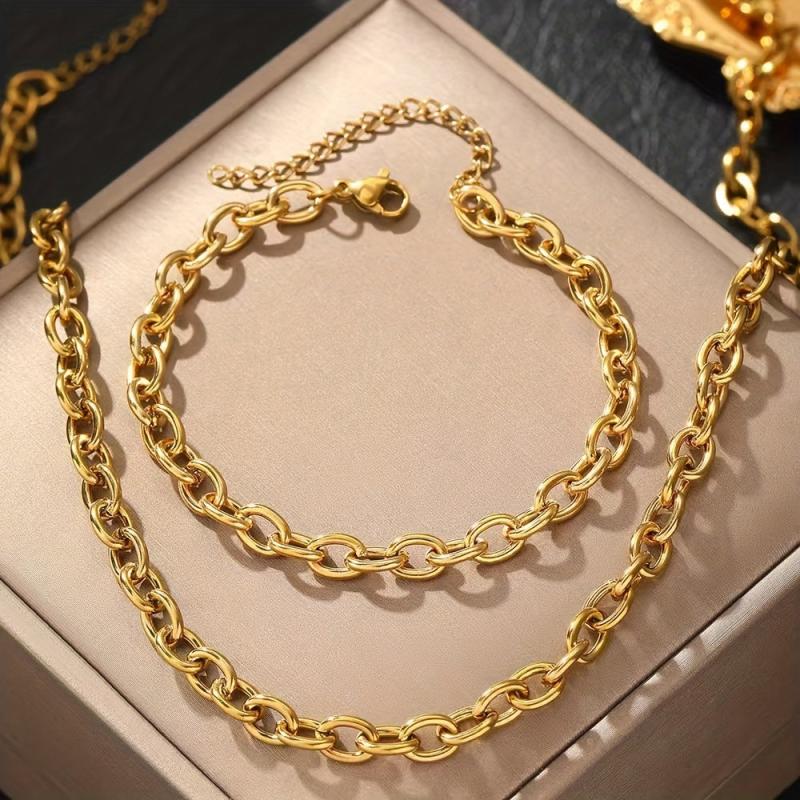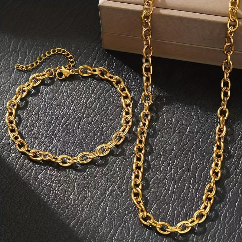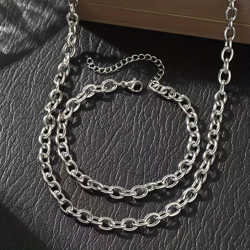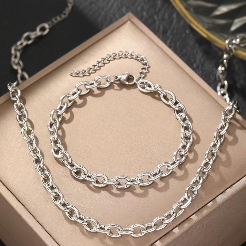 This versatile set includes a light stainless steel necklace and bracelet that can be worn alone or together as a pendant bracelet necklace set.