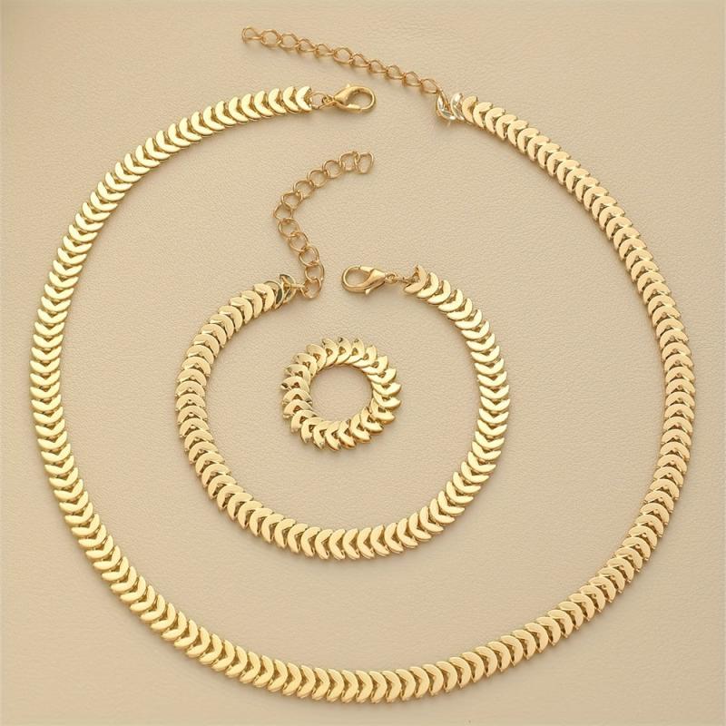 This 3-piece set includes 1 ring, 1 bracelet, and 1 necklace with a high fish scale iron chain design. Versatile and casual, this combo makes a great gift for any occasion.
