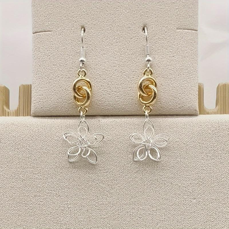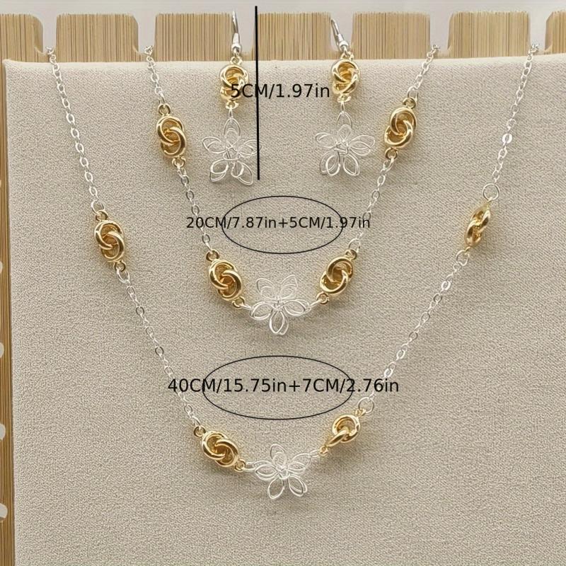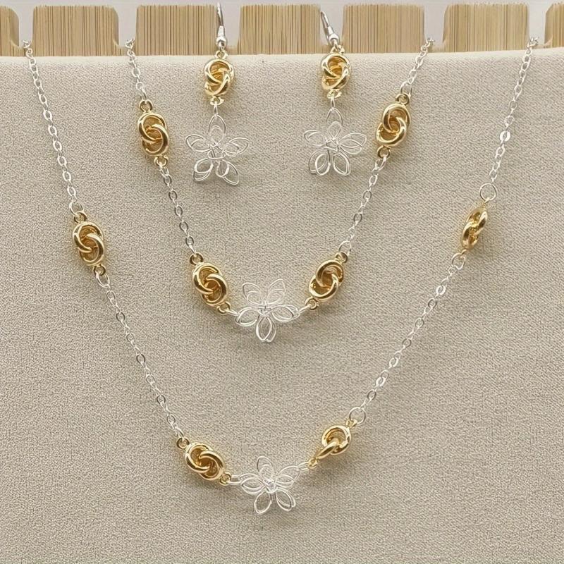 Complete your bohemian look with this sweet and stylish jewelry set featuring flower layered necklace, bracelet, and earrings in a retro geometric design.