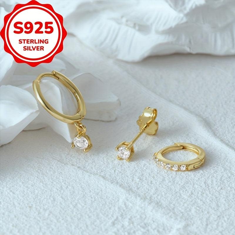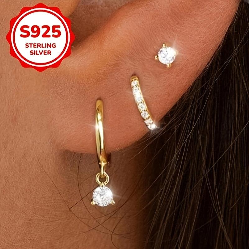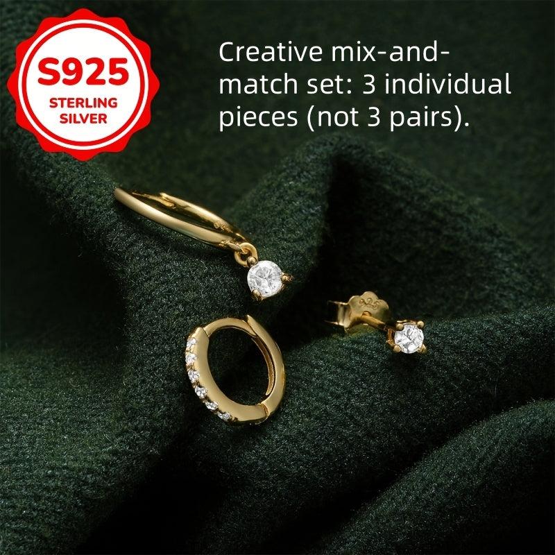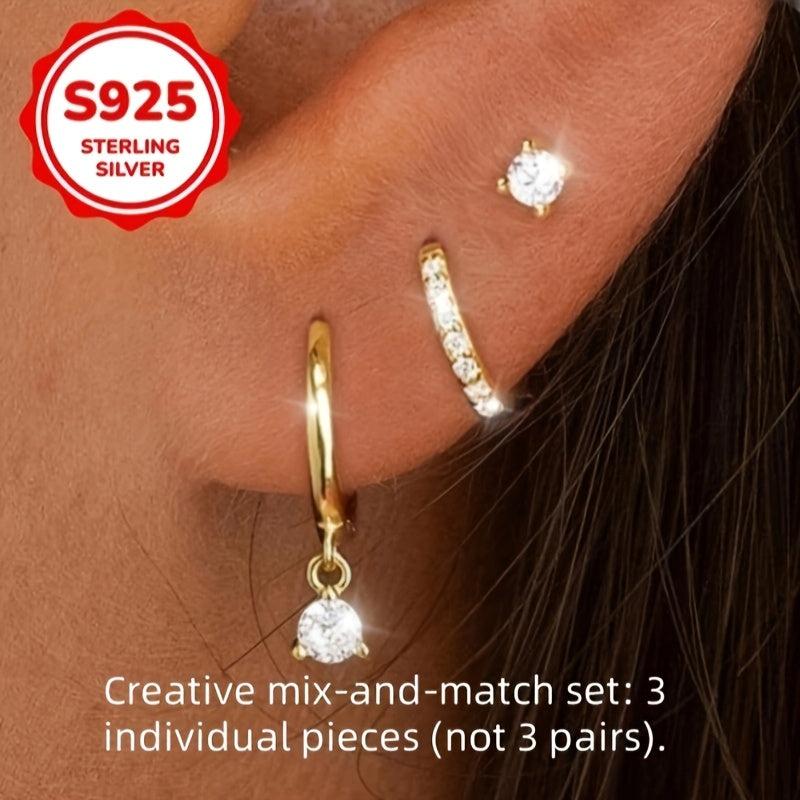Add a touch of personality with this set of 3 women's earrings. Crafted from quality S925 silver and featuring synthetic zirconia, these earrings are hypoallergenic and perfect for daily wear.