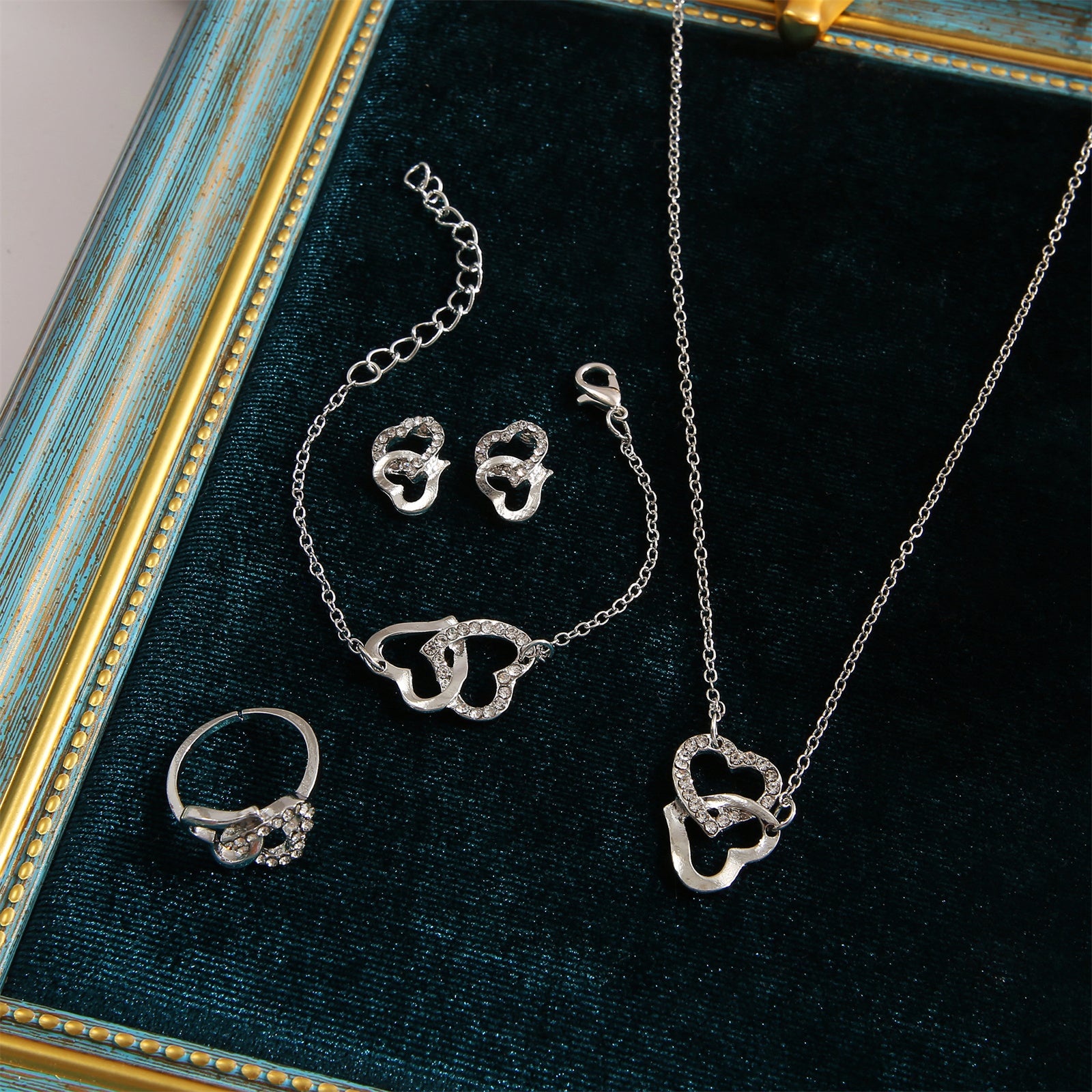 Adorn yourself with this lovely 4-piece jewelry set featuring heart-themed designs. Perfect for adding a touch of romance to your outfit.