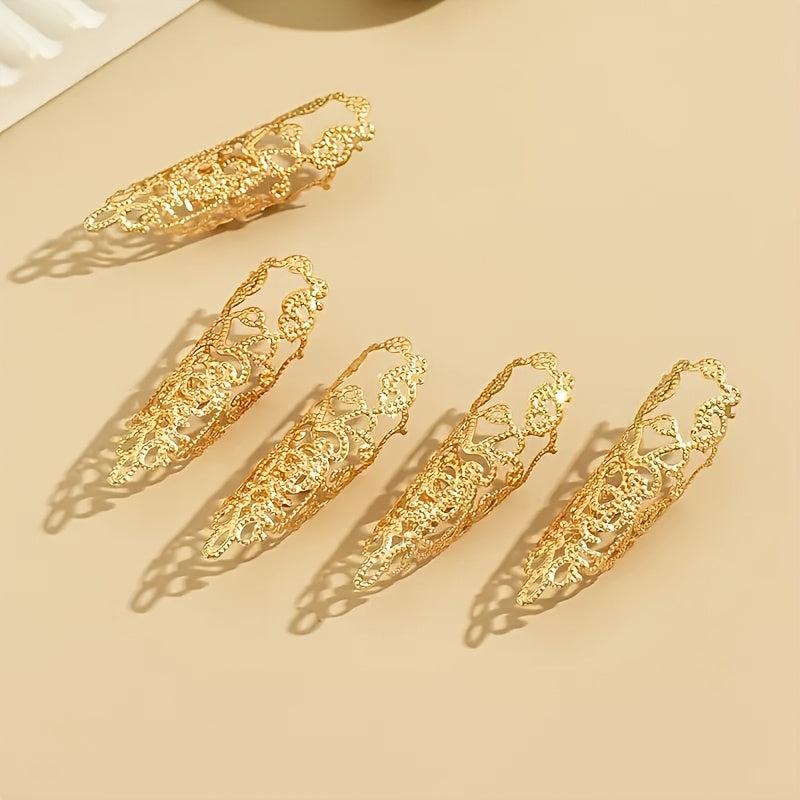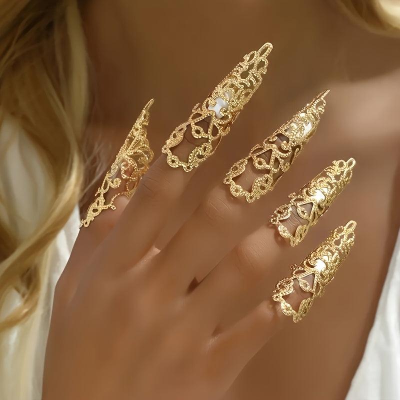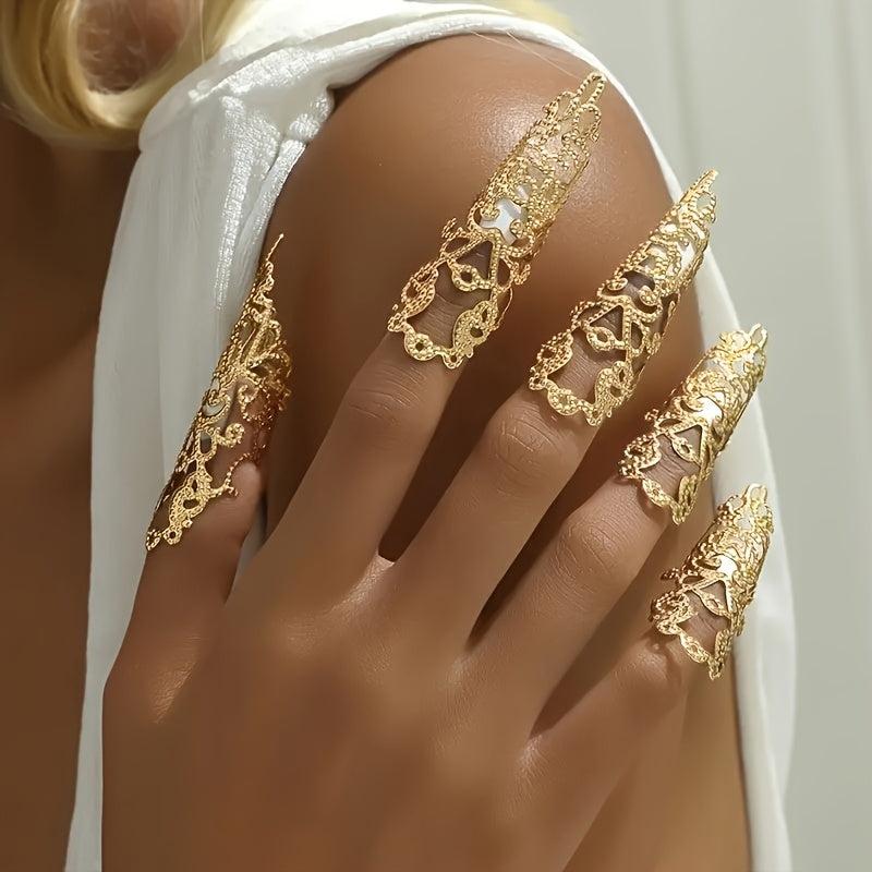 Enhance your look with this set of 5 bohemian style nail jewelry pieces, perfect for parties and performances.