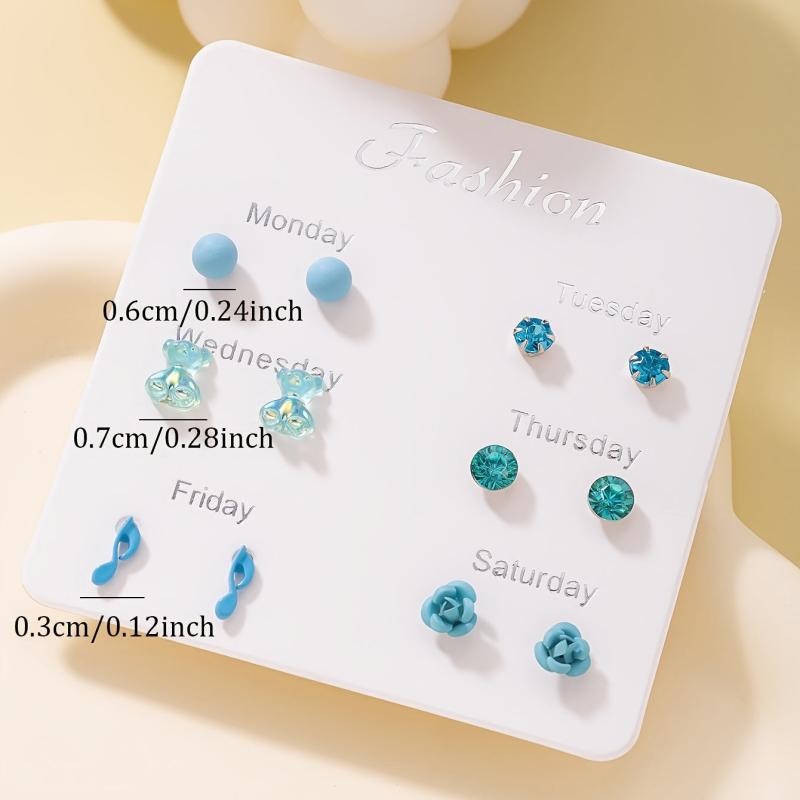 Upgrade your daily wear style with this set featuring fashionable musical note and flower designs. Each pair is adorned with rhinestones for added sparkle. Perfect to gift or add to your collection.