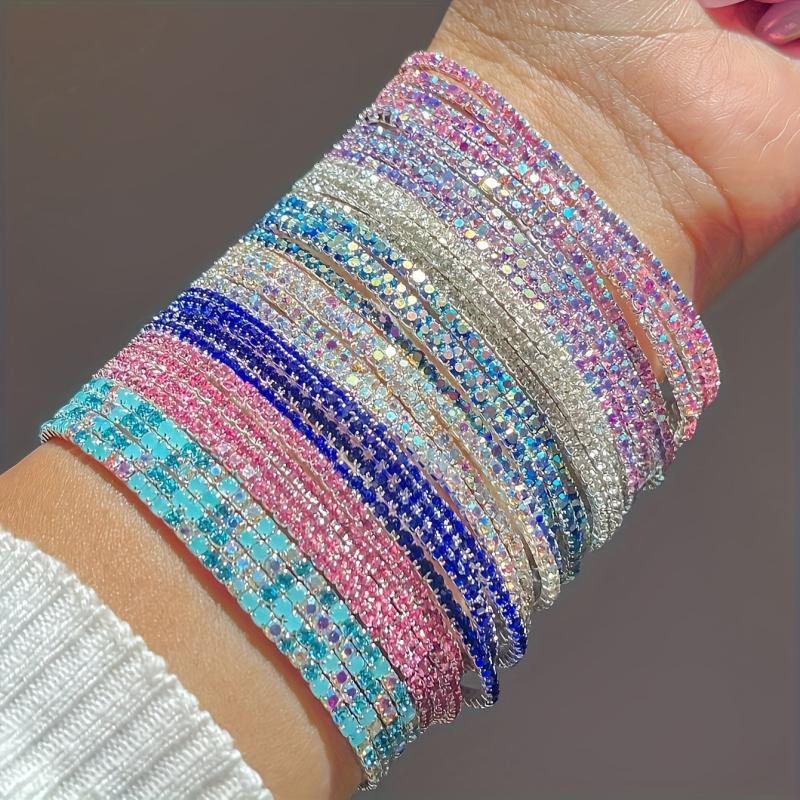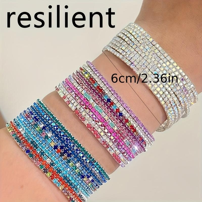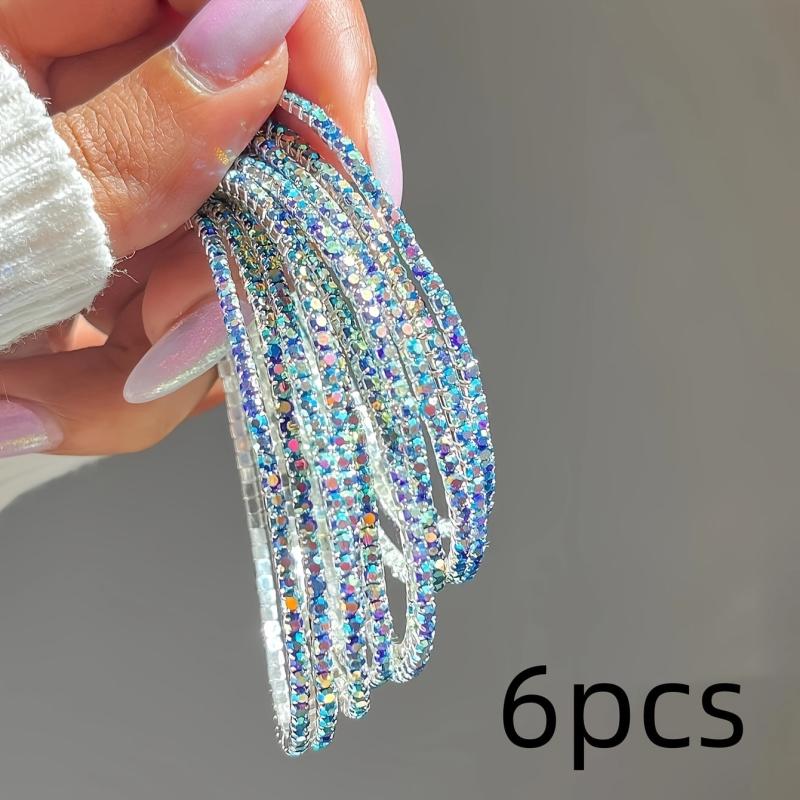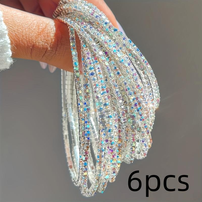 Add a touch of sparkle to your outfit with this set of 6 rhinestone stretch bracelets. Perfect for both parties and casual wear, these bracelets exude a bling style that will enhance your look.