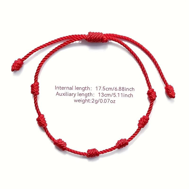 This bracelet features 7 knots symbolizing protection and good luck. It is a Buddhist mala string talisman that represents prosperity and success. Perfect for both women and men, this adjustable amulet offers spiritual benefits.