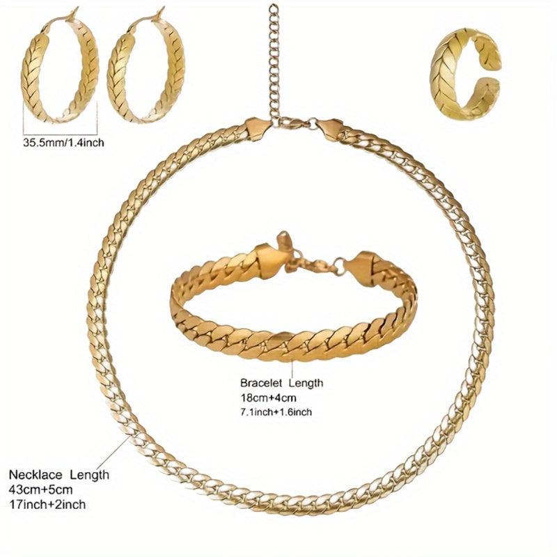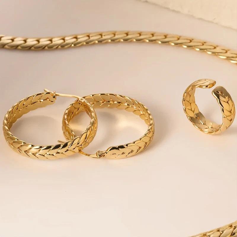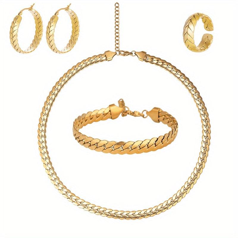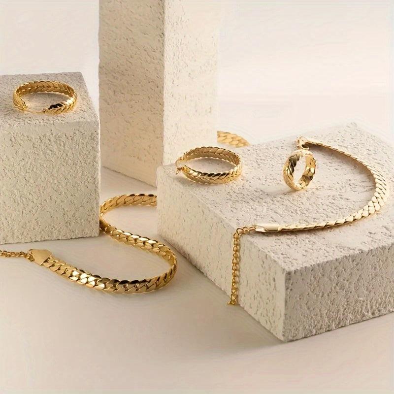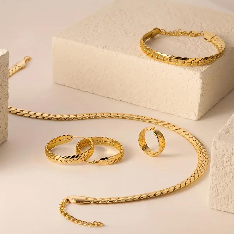 This stunning set of 925 sterling silver jewelry features a serpentine design with 18k golden plating. Perfect for birthdays, anniversaries, and parties.
