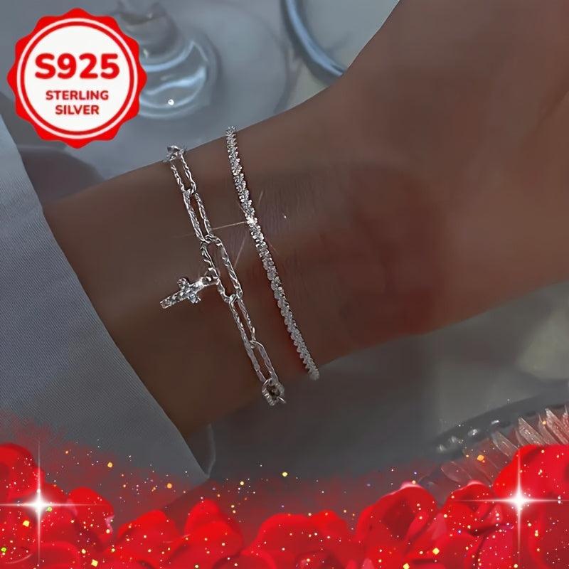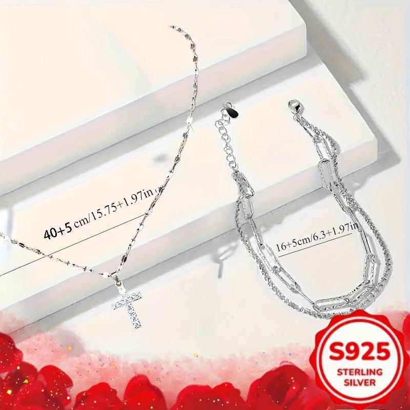This 925 sterling silver pendant set features a lip-shaped design with sparkling stones, including a matching bracelet. Perfect gift for Valentine's, Mother's Day, and more.