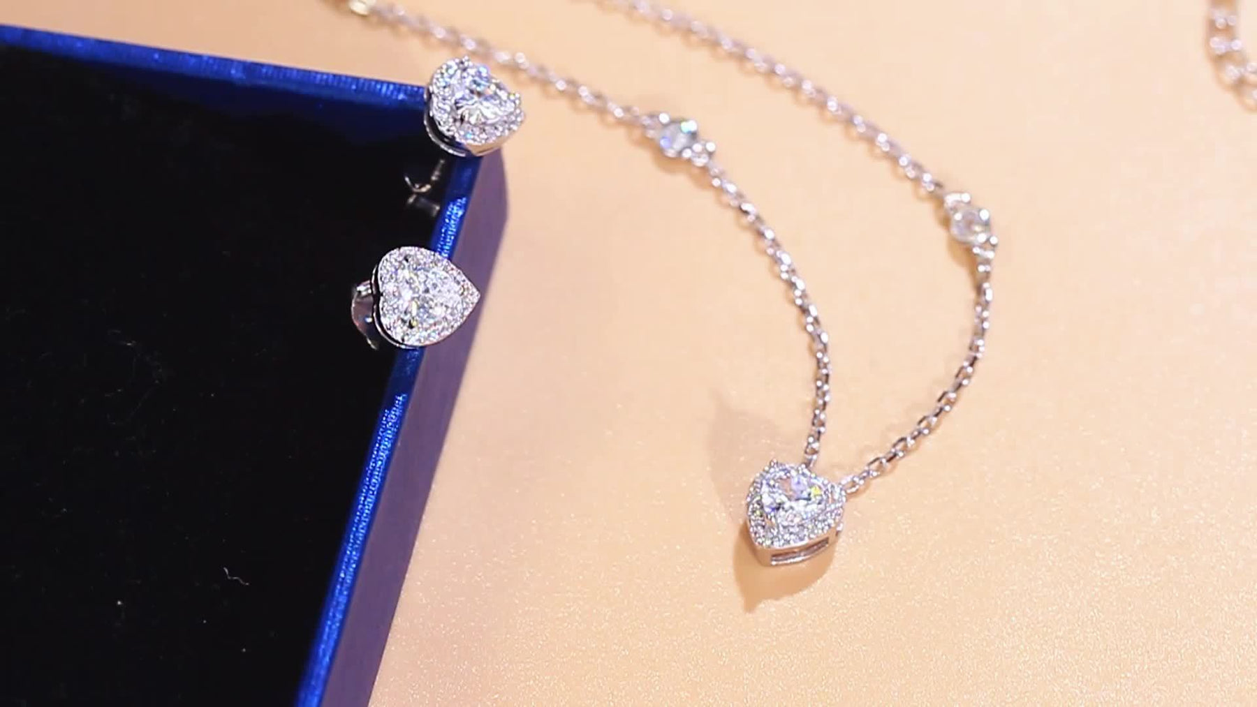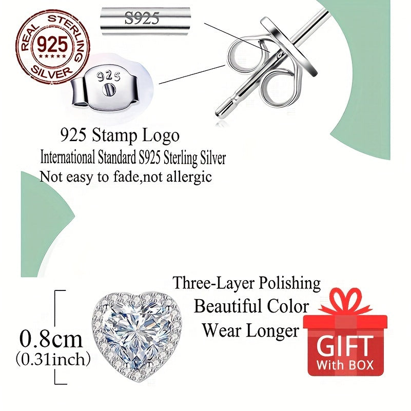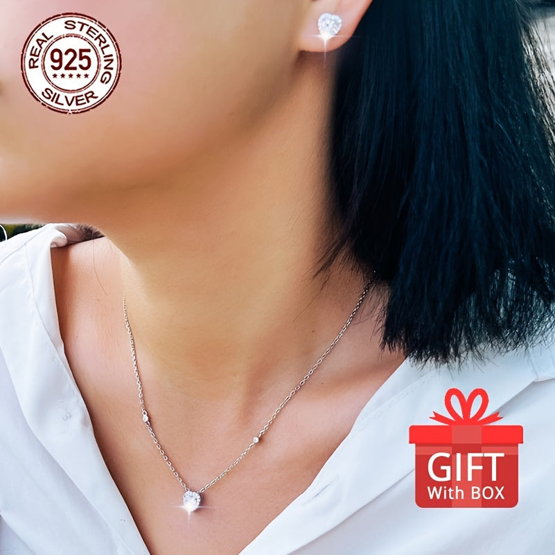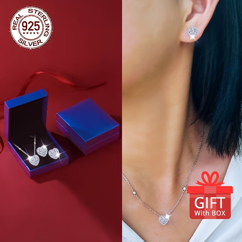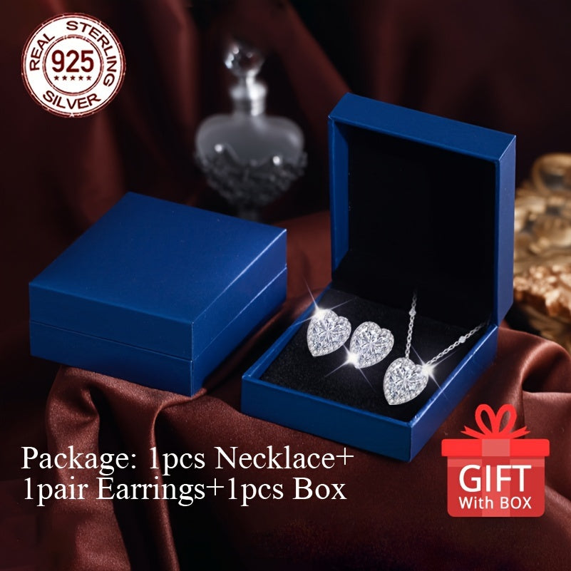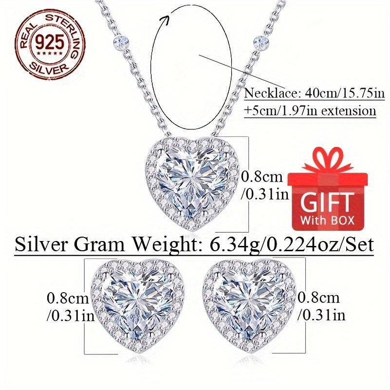 This elegant jewelry set includes a pair of heart-shaped earrings and a heart pendant necklace crafted from genuine 925 sterling silver, weighing 6.34g (0.224oz).