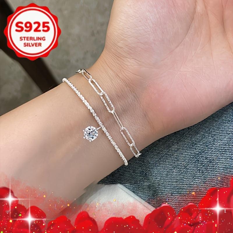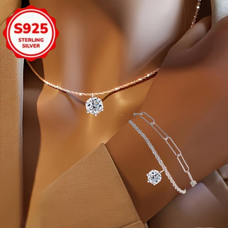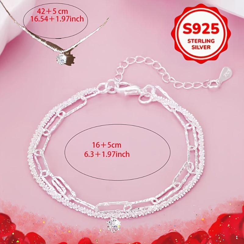 This stunning jewelry set includes a pendant necklace and bracelet featuring a sparkling six prong design. Perfect for parties, birthdays, or as a Valentine's Day gift.