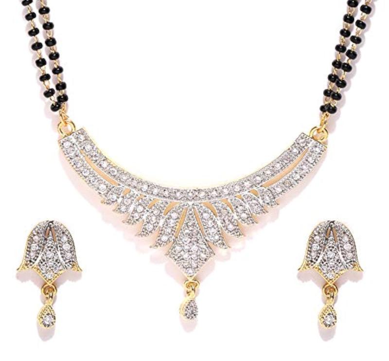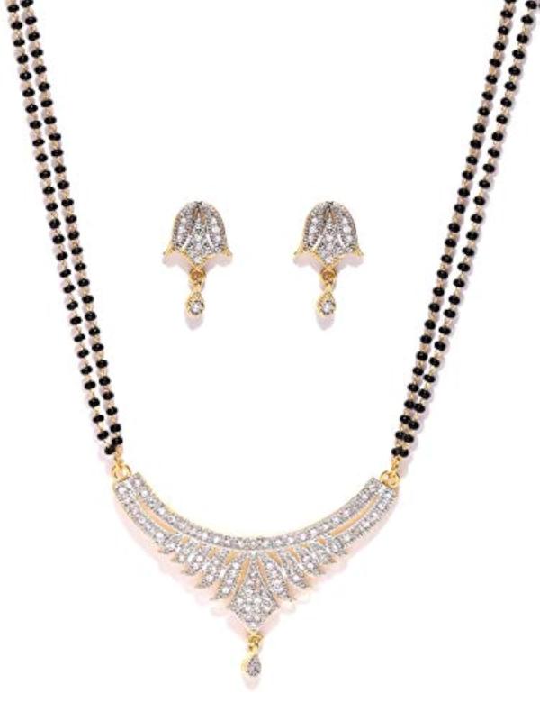 Elegant American Diamond mangalsutra set that includes a chain and coordinating earrings for a complete look.